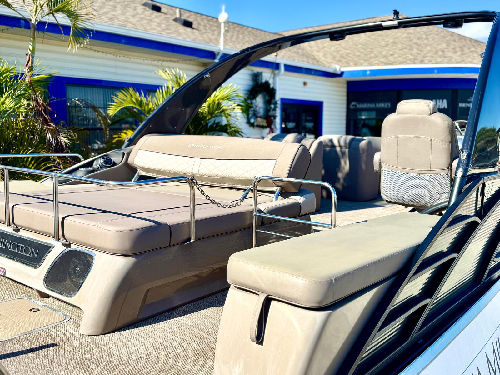 Beyond its recreational appeal, the Bennington 28 RSB pontoon boat for sale offers a range of practical benefits. The spacious deck provides ample storage for gear, water toys, and personal items, keeping the area clutter-free and organized. The pontoon’s design makes docking and maneuvering straightforward, even for those new to boating. Fuel efficiency is enhanced by the modern engine setup, allowing you to spend more time on the water and less time at the pump.The durable construction and quality materials ensure this Bennington boat for sale is built to last, providing peace of mind for years to come. Maintenance is simplified thanks to the thoughtful engineering, making ownership as enjoyable as the time you spend on the water. Whether you’re planning day trips, weekend getaways, or extended cruises, the Bennington 28 RSB is equipped to handle it all with ease.
