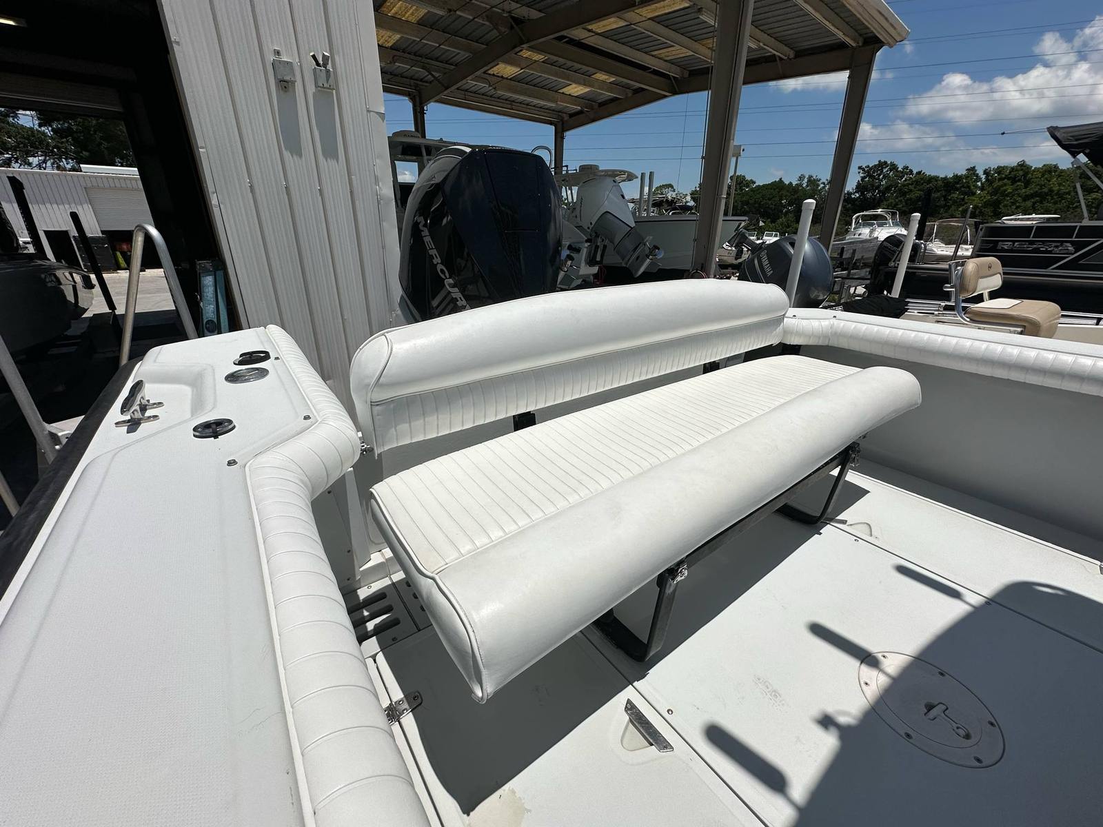 Practicality is at the heart of the Boston Whaler 24 Outrage. The center console configuration maximizes usable space and makes it easy to move around the boat, whether you are managing fishing gear or helping kids get settled for a swim. The boat’s manageable size simplifies docking and storage, making it an excellent choice for both seasoned boaters and newcomers alike.Fuel efficiency is another key advantage, allowing you to spend more time on the water and less time at the fuel dock. The single-engine setup reduces maintenance requirements while still delivering the power you need for a variety of activities. The durable construction and thoughtful design features make this boat easy to clean and maintain, ensuring it stays looking great season after season.