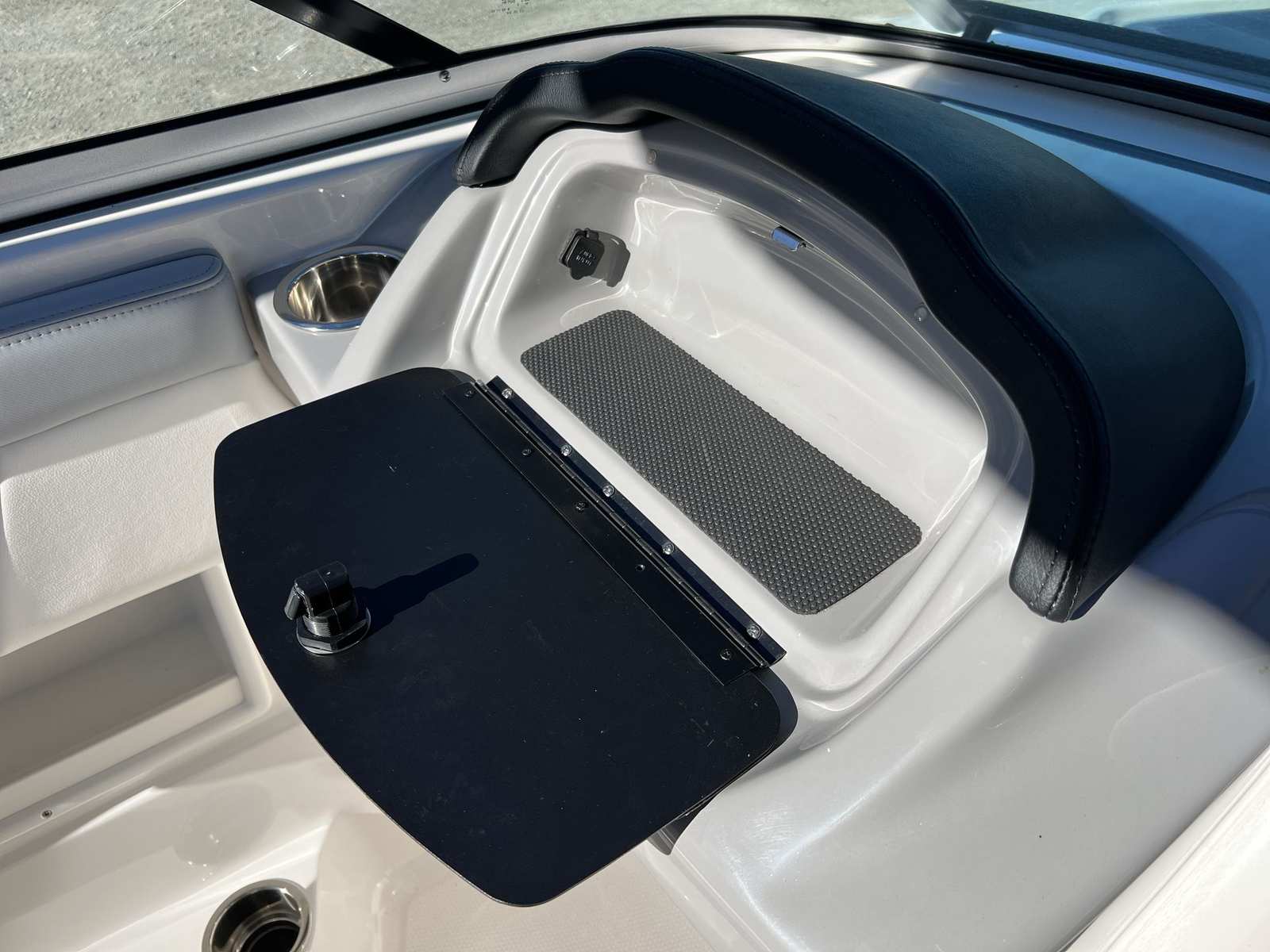 Powering the Chaparral 23 SSI is a single engine boasting an impressive 250 horsepower. This robust engine ensures exhilarating acceleration and smooth cruising, whether you’re towing water toys, heading to your favorite fishing spot, or simply enjoying a leisurely ride. The 23 SSI’s hull design is engineered for stability and agility, allowing for confident handling even in choppy conditions. With this Bowrider boat for sale, you’ll experience the perfect balance of speed, control, and fuel efficiency, making every journey on the water both exciting and economical.