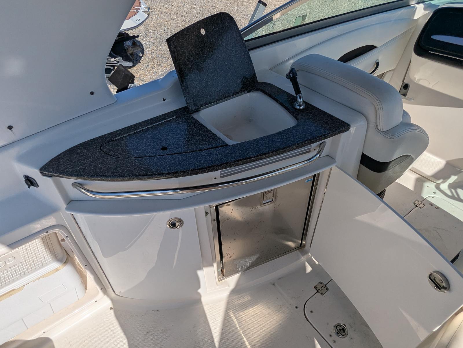 Under the hood, the Chaparral 276 is powered by a single engine delivering an impressive 420 horsepower. This robust engine ensures exhilarating acceleration, smooth cruising, and reliable handling in a variety of water conditions. The power and agility of this Bowrider make it ideal for watersports, fast-paced adventures, or simply enjoying a leisurely ride. With its responsive controls and well-balanced hull design, the Chaparral 276 offers a thrilling yet comfortable boating experience that appeals to both seasoned captains and newcomers alike.