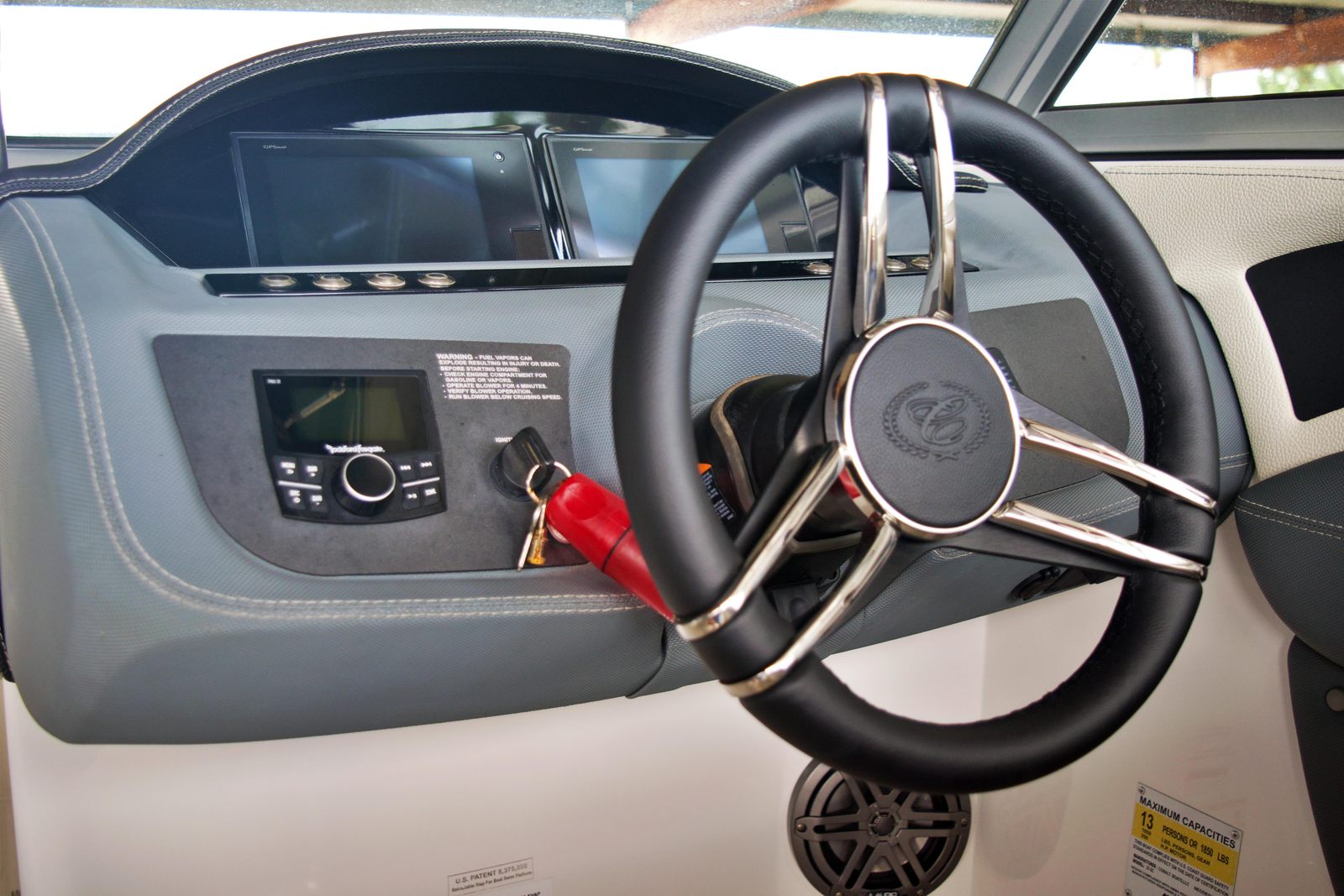 The Cobalt 25 SC Bowrider Sport is loaded with features that enhance your time on the water. Its spacious deck layout offers ample room for passengers to move comfortably, making it ideal for social gatherings, fishing trips, or family outings. The Bowrider Sport design provides excellent visibility and easy access to all controls, ensuring a safe and enjoyable boating experience.The boat’s 24.75 ft length allows for generous seating and storage options, so you can bring along everything you need for a day of fun. The high-quality construction and attention to detail are evident throughout, from the durable hull to the stylish finishes. The 25 SC’s ergonomic helm station is designed for convenience, putting all essential controls within easy reach.