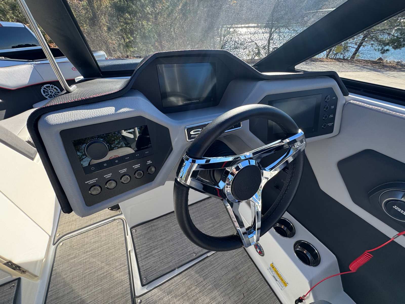 The 2024 Cobalt CS23 Surf is packed with premium features that enhance both functionality and luxury. The wireless phone charger and holder keep your devices powered and secure, while the LED interior accent lighting (R/G/B) creates a vibrant atmosphere for evening cruises. The surf hull side and forward design, paired with the Volvo Surf Components, allow for exceptional wave creation and control, perfect for wake surfing enthusiasts.Enjoy the convenience of a rearview mirror with a custom cover, ensuring optimal visibility and safety. The swim platform with a flip-down step makes water access effortless, whether you’re swimming, boarding, or simply relaxing by the water’s edge. The floor covering in Seagrass Silver Ash adds a touch of elegance and comfort underfoot, while the mooring cover with arch protects your investment when docked.The glass cockpit, featuring dual Volvo 743 displays, provides intuitive control and navigation, keeping you informed and in command at all times. These advanced systems make piloting the CS23 Surf both enjoyable and straightforward, even for those new to boating.