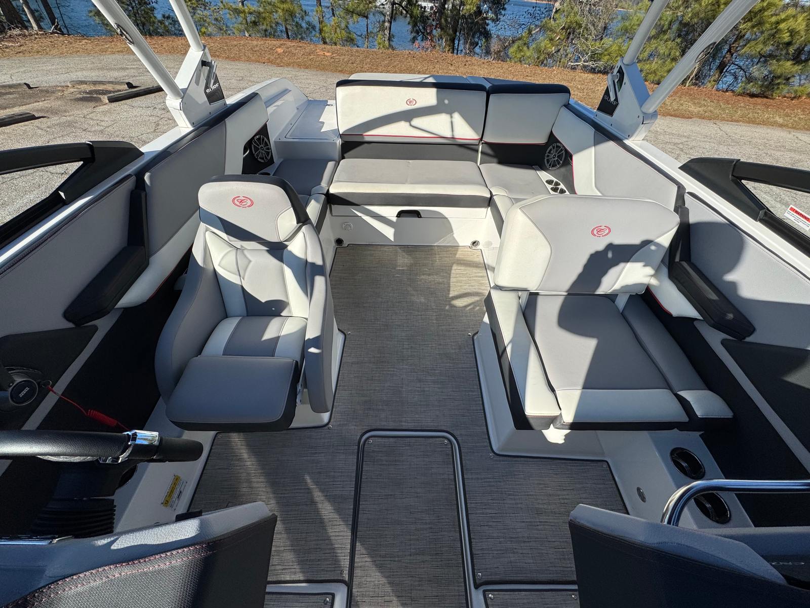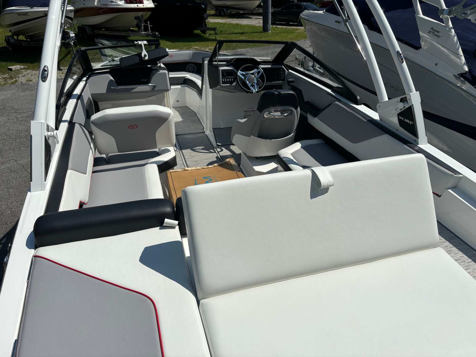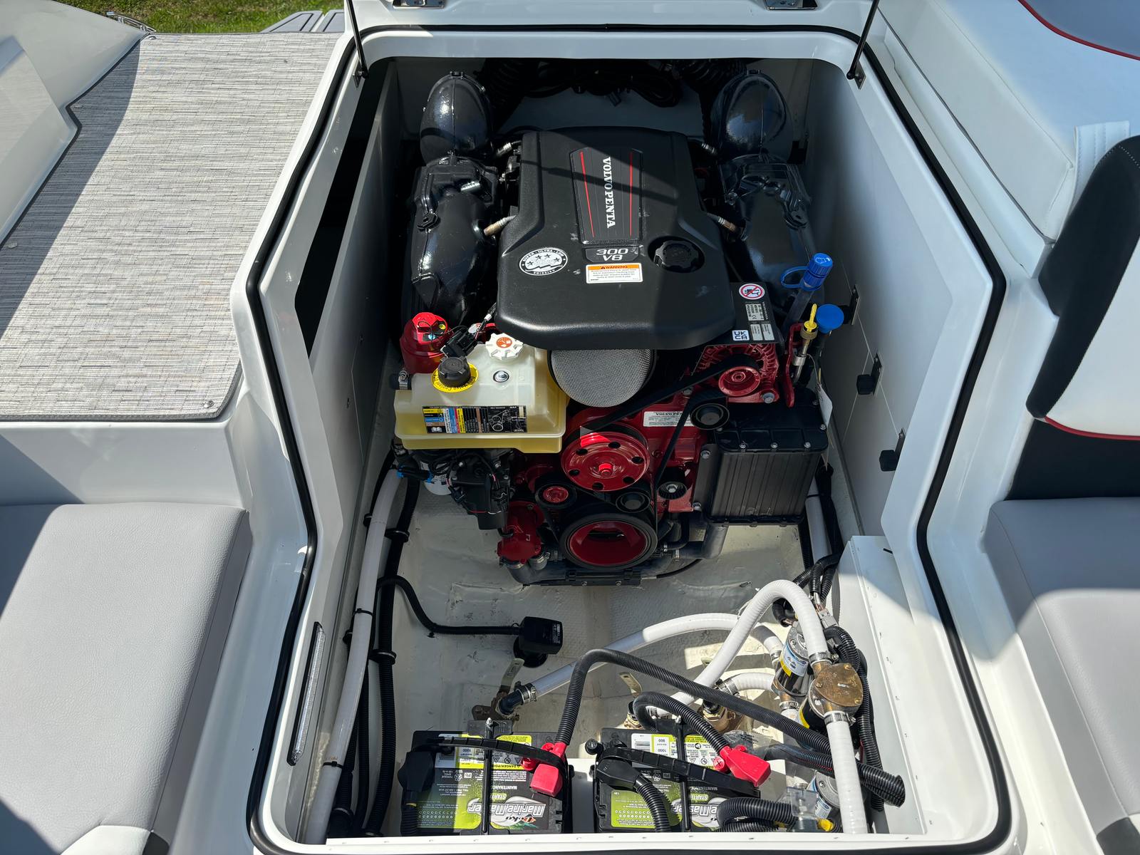 Owning the Cobalt CS23 Surf Bowrider means embracing a lifestyle of fun, relaxation, and adventure. The spacious layout is perfect for socializing, whether you’re hosting a sunset cruise or spending a day on the lake with family. The LED accent lighting sets the mood for evening gatherings, while the swim platform and flip-down step invite everyone to dive in and enjoy the water.The wireless phone charger ensures you stay connected and entertained, while the glass cockpit and dual Volvo displays make navigation and system management effortless. The surf hull and Volvo Surf Components open up a world of possibilities for wake surfing and water sports, providing endless excitement for thrill-seekers and beginners alike.