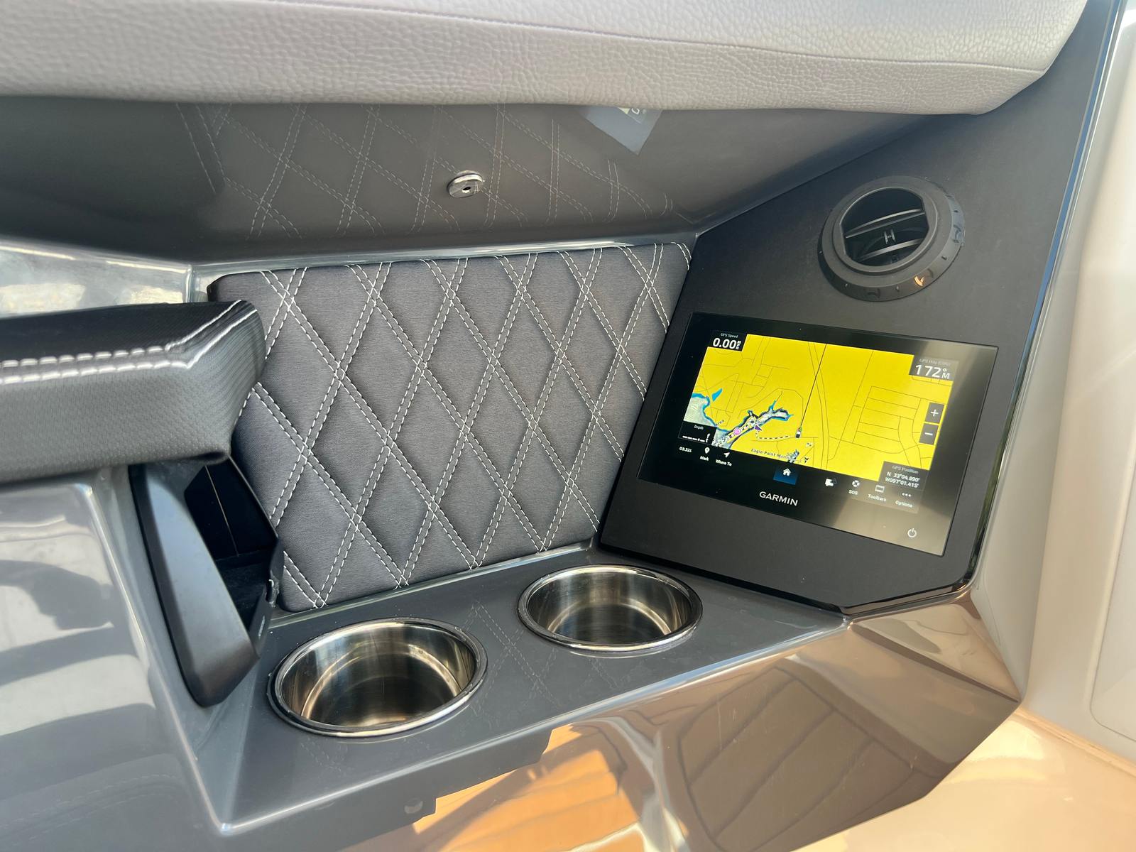 The Cobalt R31 Surf is as practical as it is beautiful. Its generous storage options, including the closet-watersports compartment and storage tub for fender lines, make it easy to keep your boat organized and clutter-free. The battery maintainer/charger ensures your boat is always ready to go, minimizing downtime and maximizing your time on the water.Docking and maneuvering are simplified thanks to the twin engines and joystick control, giving you confidence in tight spaces and busy marinas. The rear-facing camera adds an extra layer of safety, making it easier to keep an eye on swimmers, wakeboarders, or obstacles behind the boat. The electric adjustable seat and spacious cockpit allow for effortless transitions between activities, whether you’re cruising, dining, or gearing up for watersports.