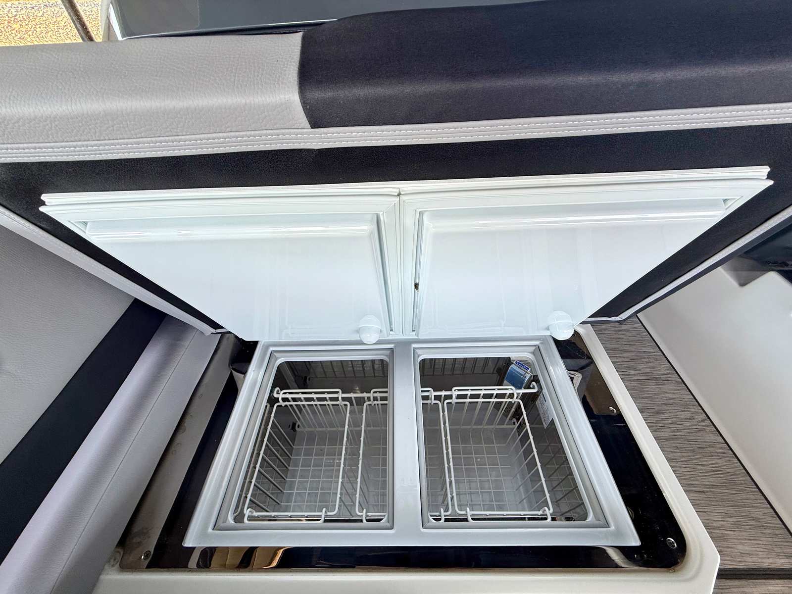 The Cobalt R35 is designed with practicality in mind, making ownership effortless and enjoyable. The cockpit boarding door streamlines entry and exit, especially when docked or rafted up with other boats. The air compressor is a handy addition for inflating paddleboards, tubes, or other water accessories, ensuring you’re always ready for fun.Storage solutions throughout the boat keep your gear organized and accessible, while the bow tonneau cover protects your belongings from the elements. The dual engines not only provide powerful performance but also contribute to easier docking and maneuvering, making the R35 a great choice for both experienced captains and those new to boating.Fuel efficiency is enhanced by Cobalt’s commitment to engineering excellence, allowing you to spend more time on the water and less time refueling. The compliance with California engine requirements ensures you can enjoy boating in regulated waters without concern.