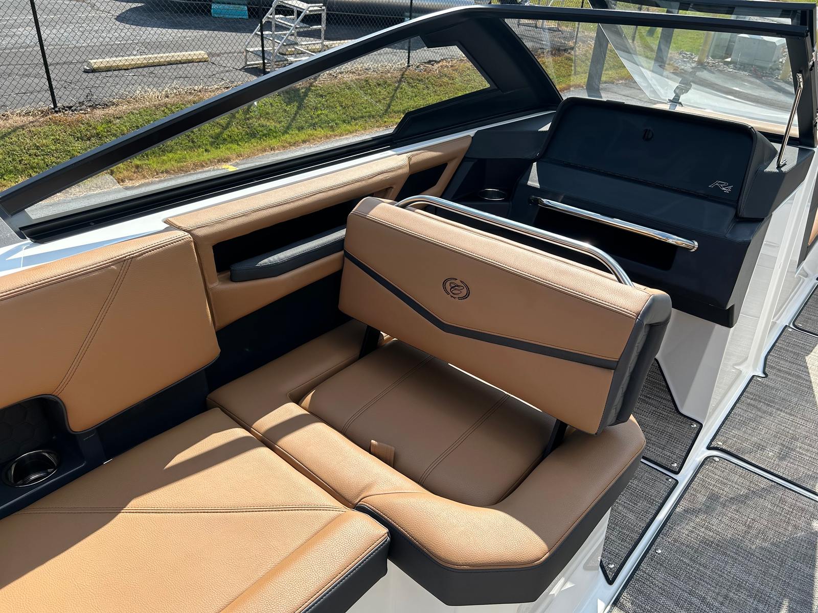 The Cobalt R4 Surf is packed with premium features designed to elevate your boating experience. The aft-facing rumble seat offers a comfortable spot to relax and enjoy the view, while the battery maintainer/charger (110V) keeps your boat powered and ready for action. The interior showcases a luxurious combination of caramel, carbon, and ebony, complemented by striking Cobalt letters in white satin for a touch of elegance.Stainless steel docking lights illuminate your way during evening outings, and four fender clips with lines provide added convenience and protection when docking. The floor covering in sea grass and raw umber not only enhances the boat’s aesthetic appeal but also offers durability and comfort underfoot. The glass cockpit features dual Volvo 8610 displays, providing advanced navigation and control at your fingertips. The navy hull bottom adds a bold and stylish finishing touch, ensuring your boat stands out wherever you go.