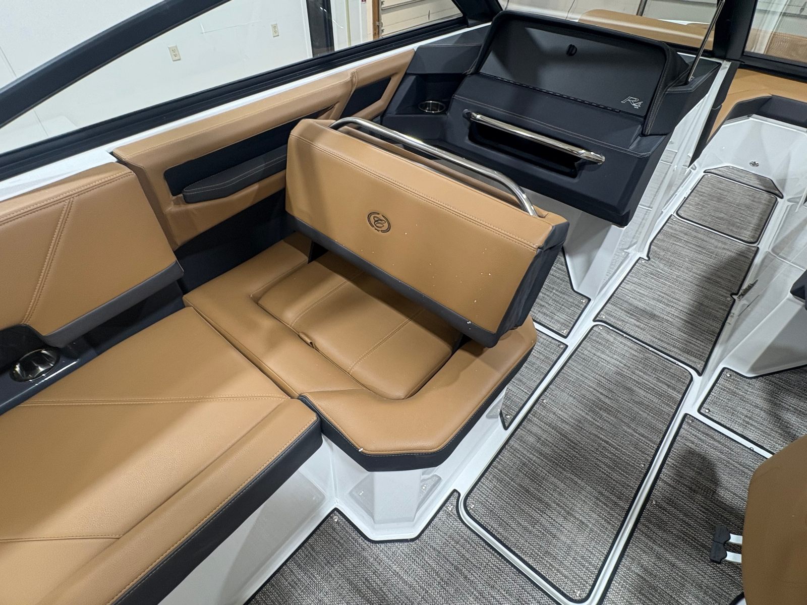 The Cobalt R4 is packed with special features designed to elevate your boating experience. The folding Arch, E2 - White with Captain/Navy Bimini, provides shade and style, while the aft-facing rumble seat offers a unique spot to relax and enjoy the view. The glass cockpit, equipped with dual Garmin 8610 displays, puts advanced navigation and system controls at your fingertips, ensuring you are always in command. Stainless steel docking lights enhance visibility during evening returns, and the four fender clips with lines make docking and securing your boat a breeze. The floor covering in Seagrass, Raw Umber, adds a touch of elegance and comfort underfoot, while the overall fit and finish reflect Cobalt’s commitment to quality and craftsmanship.