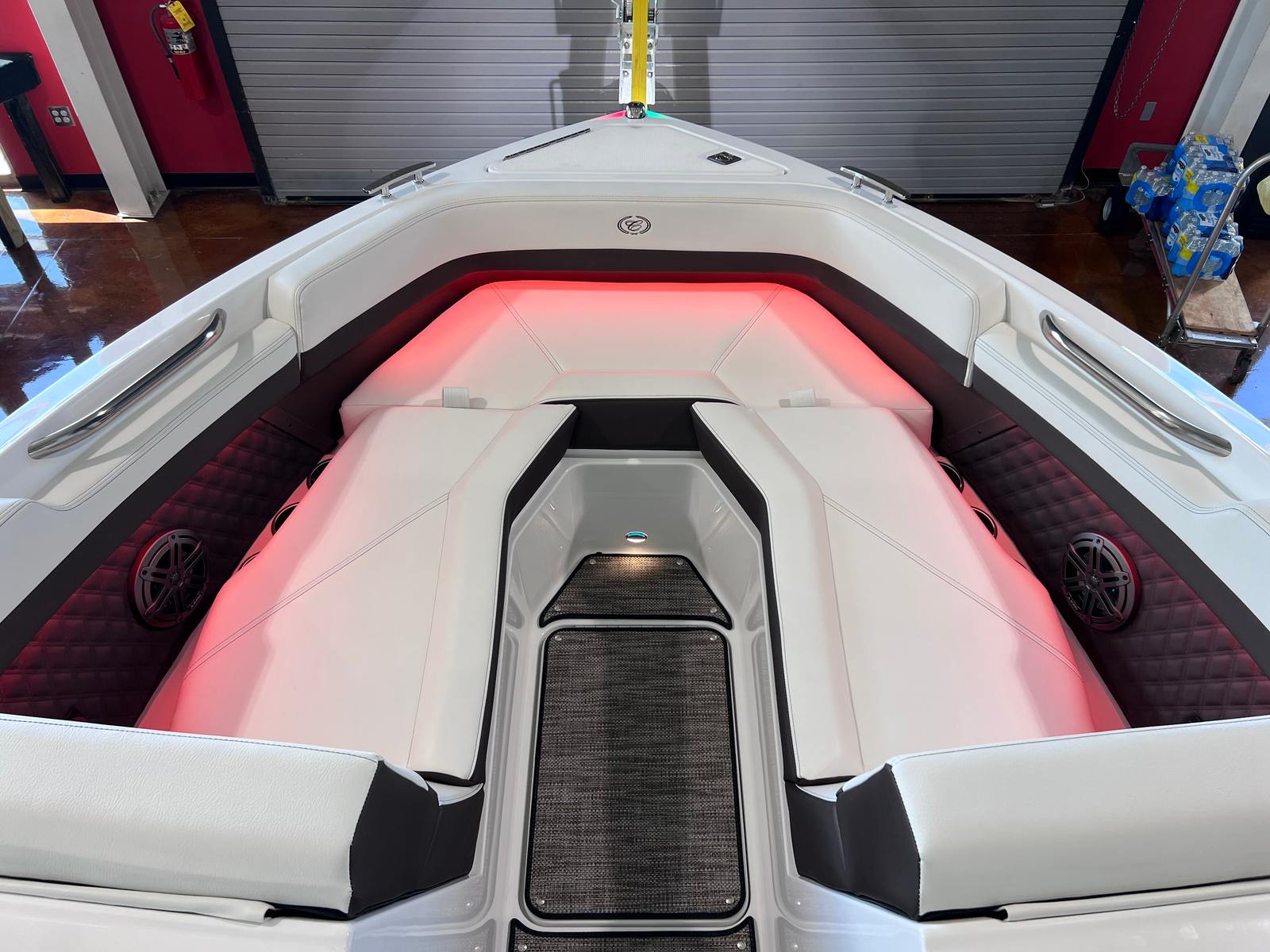 Owning the Cobalt R4 Bowrider means embracing a lifestyle of fun, relaxation, and adventure. The spacious layout is perfect for entertaining family and friends, with ample seating and thoughtful design elements that encourage socializing. The aft-facing rumble seat is ideal for lounging while anchored or enjoying the scenery as you cruise.The folding arch with bimini offers versatile protection from the elements, allowing you to adapt to changing weather conditions without sacrificing comfort. The premium floor covering ensures that every step is cushioned and secure, while the glass cockpit and dual Garmin displays provide peace of mind with advanced navigation and system controls.The R4’s combination of power and efficiency means you can spend more time enjoying the water and less time worrying about fuel consumption. The battery maintainer/charger and stainless steel docking lights add practical value, making maintenance and nighttime docking simple and stress-free.