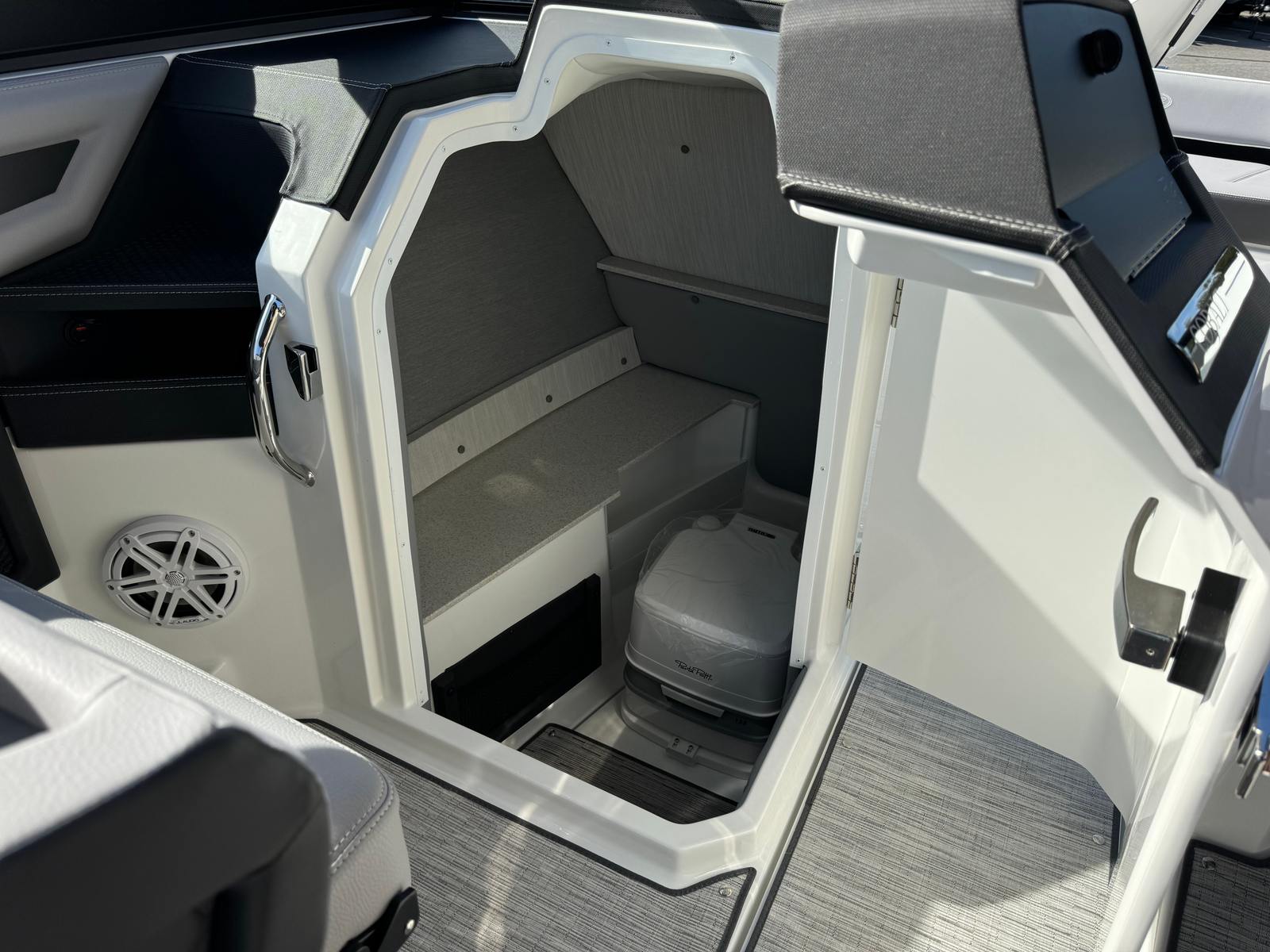 The Cobalt R6 Surf is packed with premium features that enhance both comfort and functionality. Enjoy the convenience of a Pump Out Porta Potti, making longer outings more comfortable for everyone on board. The Swim Platform with Flip Down Step offers easy access to the water, perfect for swimming, lounging, or gearing up for your favorite water sports. The Prisma Folding Arch adds a touch of style and practicality, allowing for easy storage and transport.For those who love wakeboarding, the PTM Silver Wakeboard Racks provide secure storage for your gear, while the Docking Lights in Stainless Steel ensure safe and stylish arrivals at any marina. The Wireless Phone Charger/Holder keeps your devices powered and within reach, so you can capture every moment or stay connected while on the water. The Floor Covering in Seagrass, Silver Ash, adds a touch of elegance and comfort underfoot, making every trip feel luxurious. Protect your investment with the included Mooring Cover, keeping your Bowrider looking pristine when not in use.