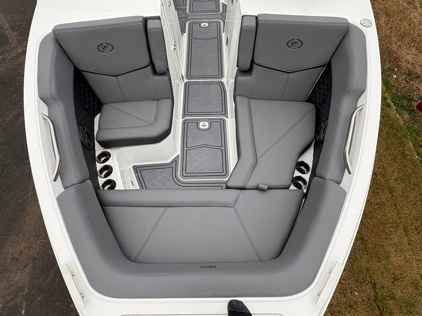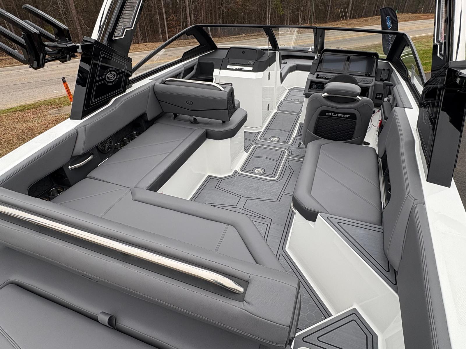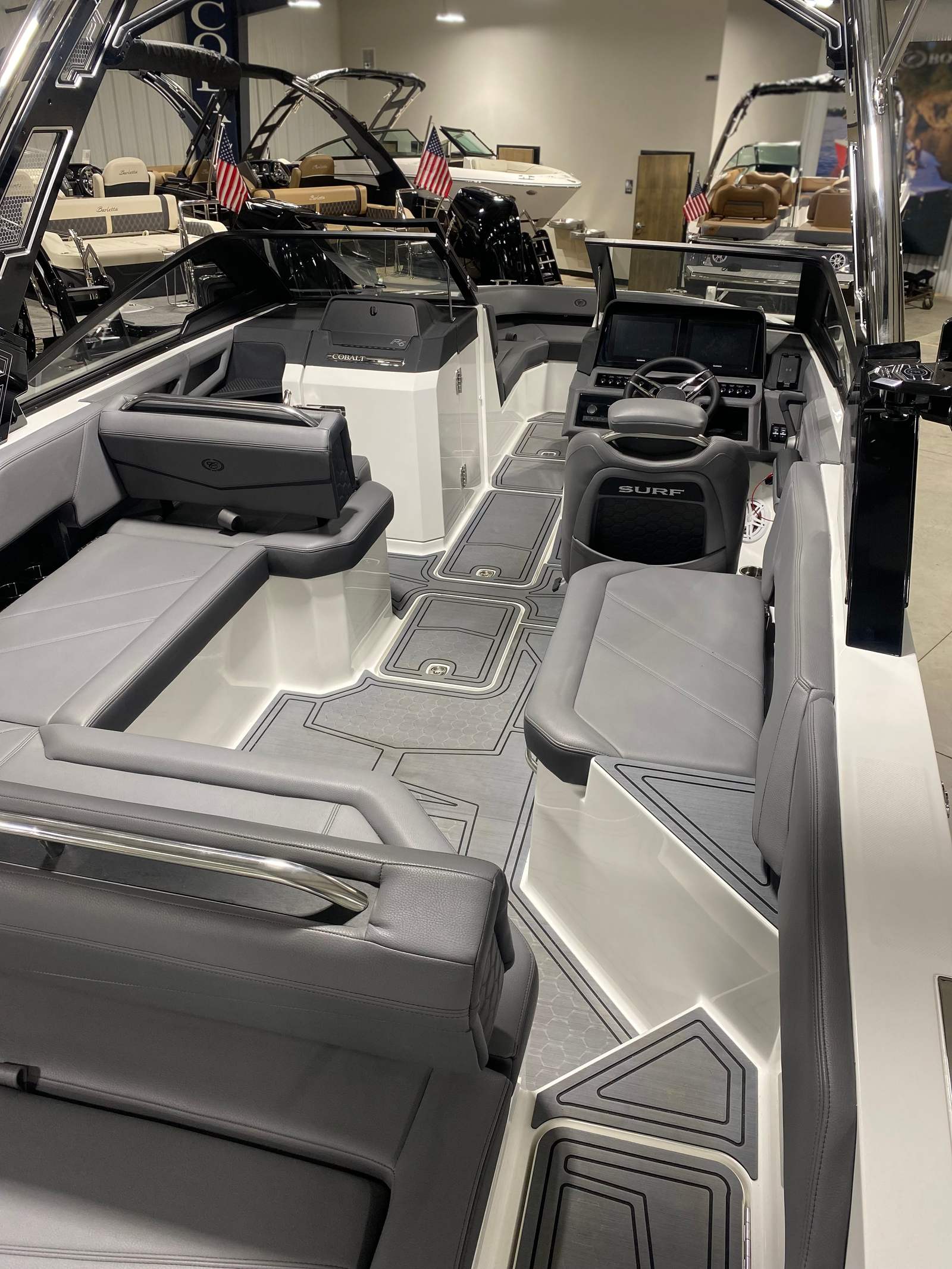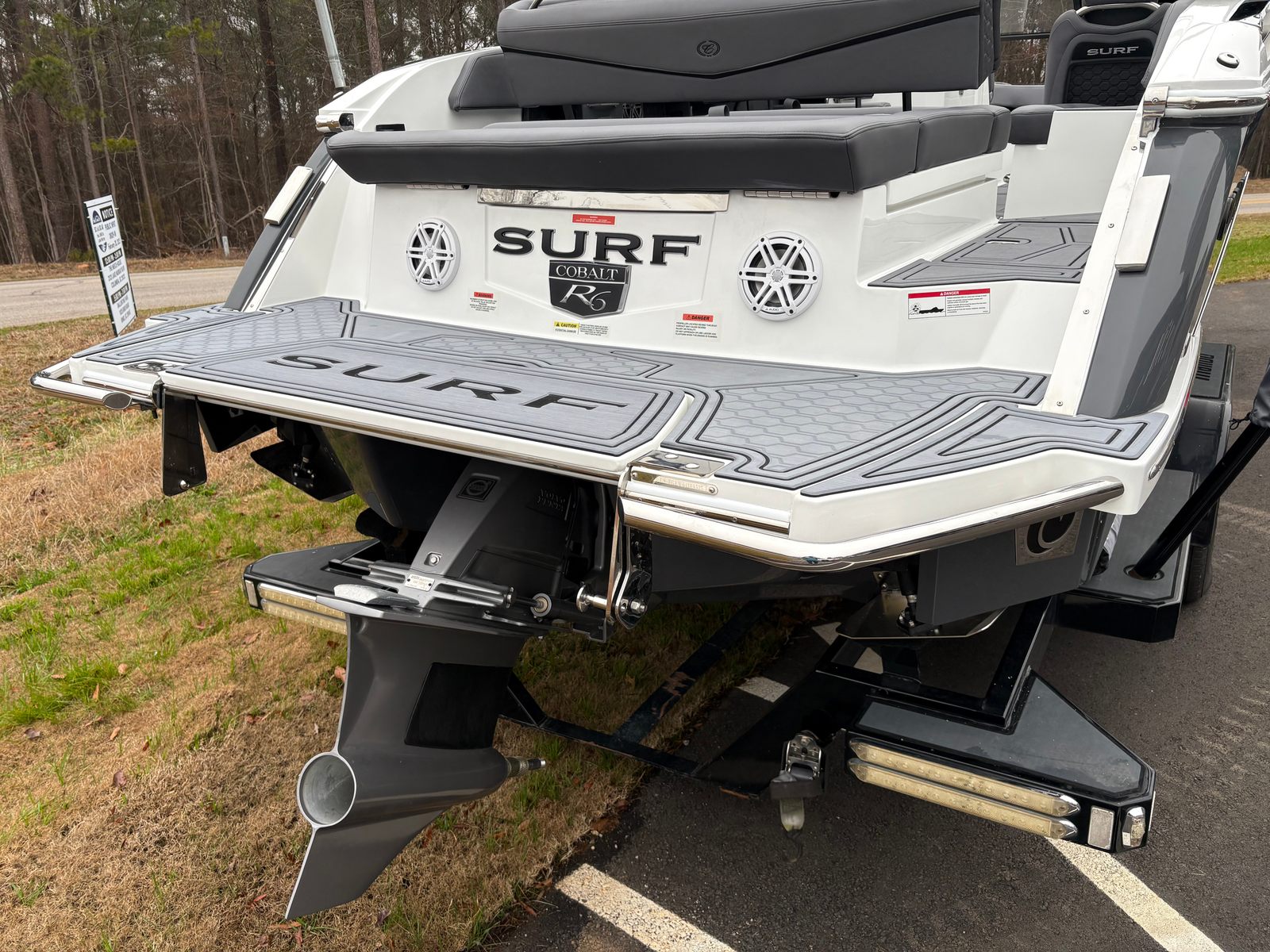Owning the Cobalt R6 Surf means embracing a lifestyle of fun, relaxation, and adventure. The spacious Bowrider layout is perfect for socializing, allowing friends and family to spread out and enjoy the ride. The plush seating and ergonomic design ensure comfort for all passengers, whether you’re cruising, sunbathing, or gearing up for a day of wakeboarding.The R6 Surf’s advanced features make every outing more enjoyable. LED accent lighting sets the mood for evening gatherings, while the swim platform extension invites you to dive in and cool off. The electric arch and Bimini provide much-needed shade on sunny days, and the wakeboard racks keep your equipment organized and accessible. With its stylish color scheme and attention to detail, the R6 Surf is as much a statement piece as it is a high-performance vessel.