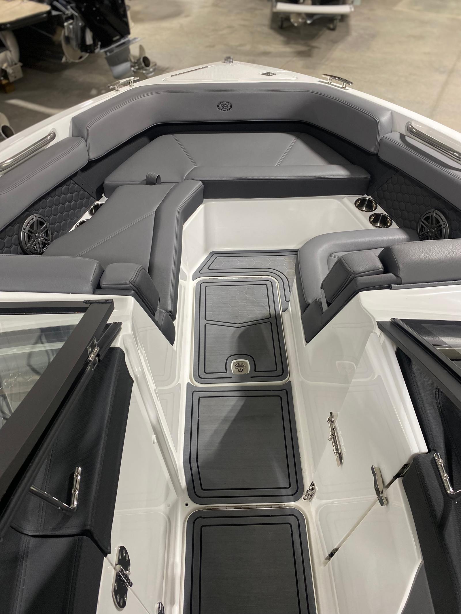 The 2025 Cobalt R6 Surf stands out as a premier Bowrider, measuring an impressive 25.75 feet in length. This new vessel showcases Cobalt’s commitment to quality, craftsmanship, and cutting-edge design. The R6 Surf’s spacious layout is perfect for entertaining, relaxing, and enjoying all the recreational possibilities that come with owning a luxury Bowrider. Whether you’re cruising along the coast, anchoring at your favorite cove, or enjoying watersports, this Cobalt boat for sale is built to accommodate your every need.
