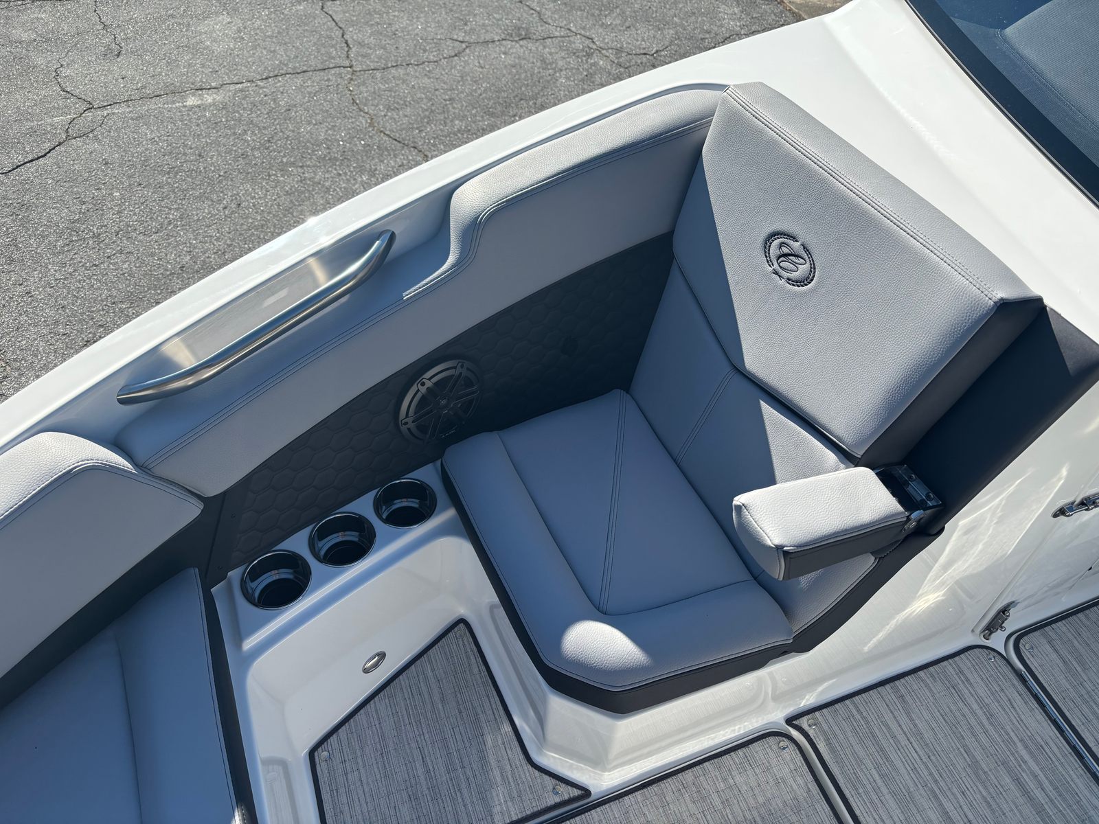 The Cobalt R6 Surf is packed with features that elevate your boating experience. The striking accent stripe in white gives the boat a sleek, modern appearance, while the mooring cover provides essential protection when the boat is not in use. The Prisma folding arch adds both style and functionality, making it easy to store or transport the boat and providing a convenient mounting point for accessories.Stainless steel docking lights enhance visibility and safety during low-light conditions, ensuring smooth arrivals and departures at any dock. The iconic Cobalt letters in black satin add a touch of sophistication, while the wireless phone charger and holder keep your devices powered and secure throughout your journey. The swim platform extension in white offers additional space for relaxation or water activities, making it easy to transition from the boat to the water.Fender clips with line simplify the process of securing your boat, and the Frost/Slate/Ebony interior creates a refined and inviting atmosphere for you and your guests. The glass cockpit, featuring dual Volvo 8610S displays, provides intuitive control and navigation, putting all essential information at your fingertips.
