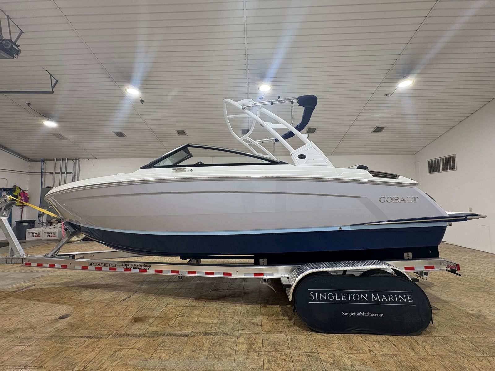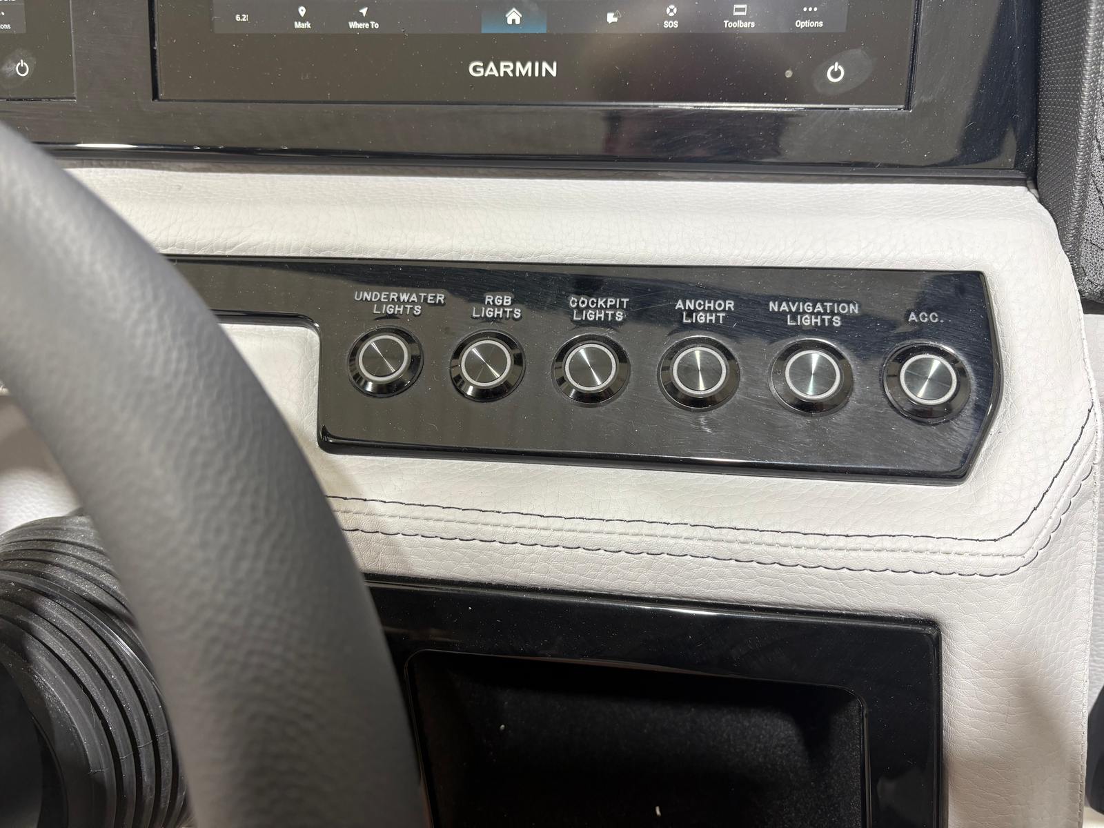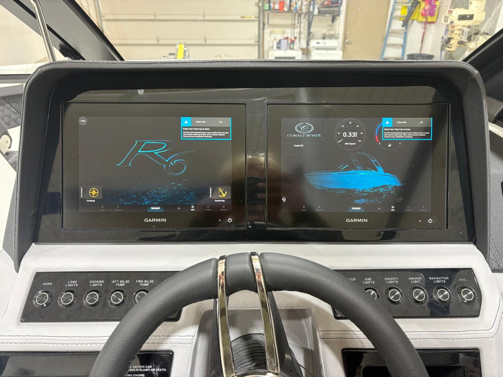 The 2026 Cobalt R6 is loaded with special features that elevate your time on the water. The folding White Arch, E2, with Captain/Navy Bimini, offers both style and practical shade, while the stainless steel docking lights add a touch of elegance and improve visibility during evening returns to the dock. The floor covering in Silver Ash Seagrass provides a comfortable, non-slip surface that is both stylish and easy to maintain.Step into the cockpit and you will find a state-of-the-art Glass Cockpit with dual Garmin 8610 displays, putting navigation, engine data, and entertainment controls at your fingertips. The LED interior accent lighting, with customizable R/G/B colors, creates a vibrant atmosphere for evening cruises or dockside gatherings. The mooring cover helps protect your investment when the boat is not in use, and the folding arch adds versatility for storage and transport.