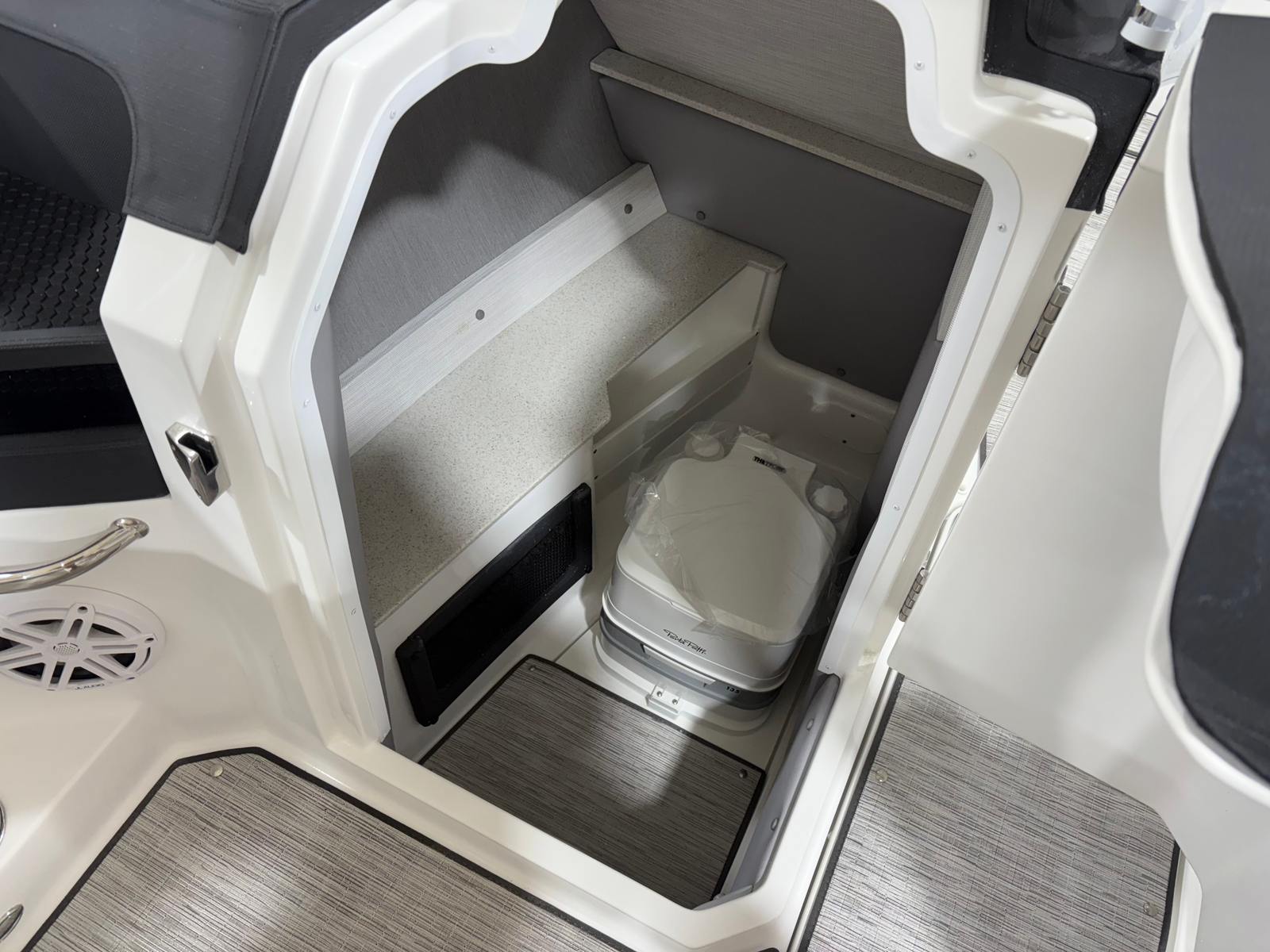 The Cobalt R6 is designed with practicality in mind, making ownership as enjoyable as the time spent on the water. The folding arch and mooring cover simplify storage and protection, while the efficient Volvo V8 engine helps you make the most of every gallon of fuel. The stainless steel docking lights and advanced navigation systems make docking and maneuvering in tight spaces a breeze, giving you peace of mind in any situation.The durable Seagrass flooring is easy to clean and maintain, ensuring your boat stays looking its best season after season. The customizable LED lighting adds a personal touch to your boating experience, whether you are hosting a sunset cruise or an evening celebration.