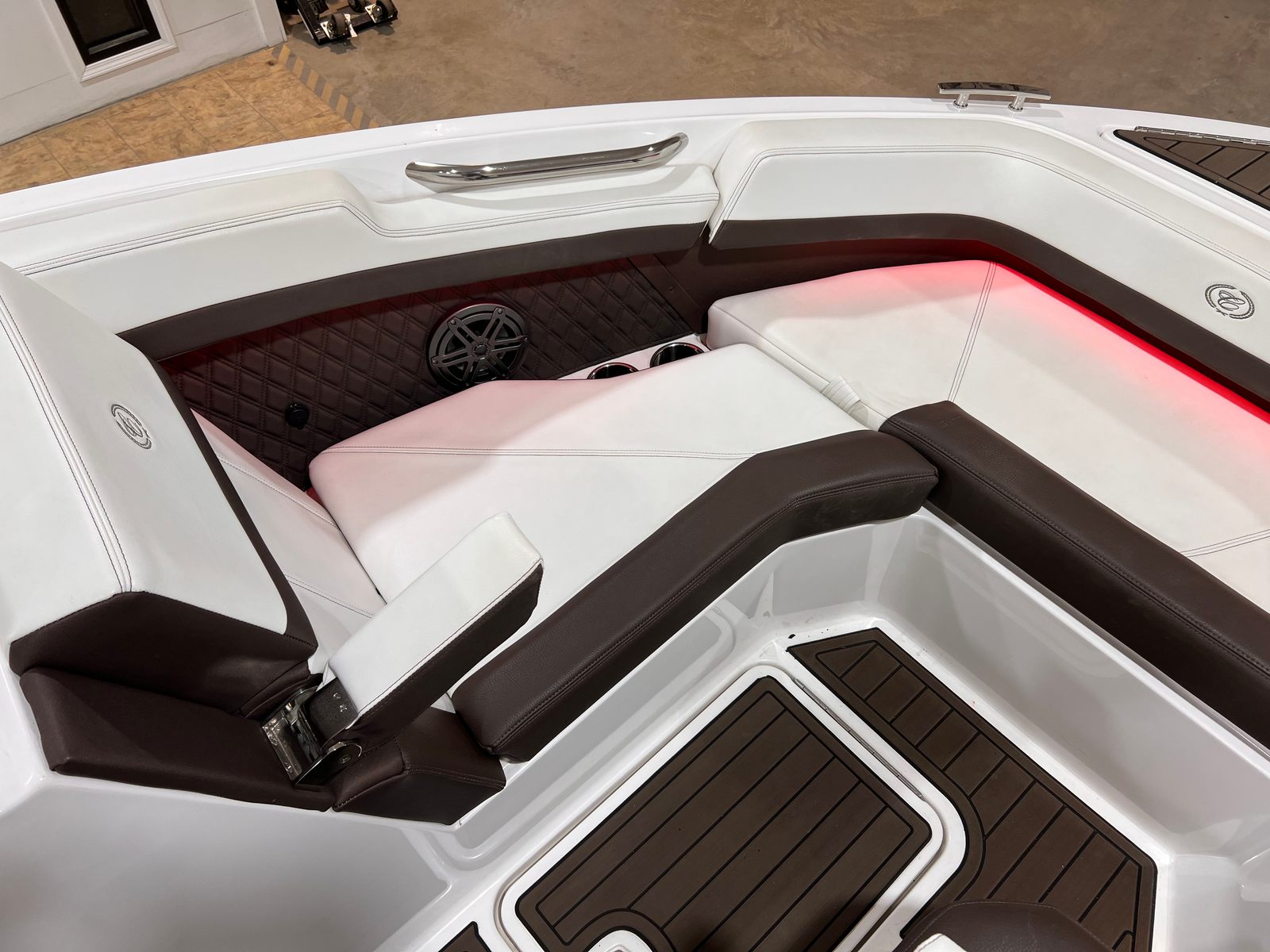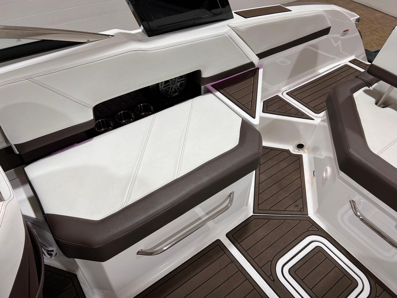 The 2023 Cobalt R6 is loaded with features that enhance both comfort and convenience, making every outing a pleasure. As a premium bowrider boat for sale, the R6 offers a spacious and thoughtfully designed cockpit, plush seating, and high-quality materials throughout. The open bow layout provides plenty of seating for guests, while the ergonomic helm ensures the captain enjoys both comfort and control. The R6’s generous length allows for a roomy swim platform, making it easy to access the water for swimming, lounging, or watersports. Storage compartments are strategically placed to keep your gear organized and out of the way, ensuring a clutter-free environment on board.