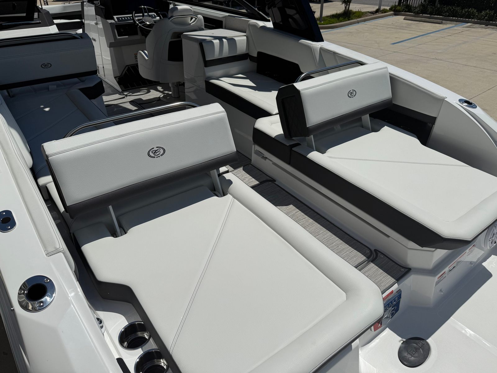 The 2025 Cobalt R8 OB is a remarkable bowrider, measuring an impressive 27 feet in length. This spacious design ensures plenty of room for family, friends, and all your favorite water activities. As a new model, it showcases the latest advancements in marine engineering and luxury, making it a top contender among Cobalt boats for sale. The R8 OB’s elegant profile, combined with its modern amenities, sets a new standard for comfort and versatility in the bowrider category.