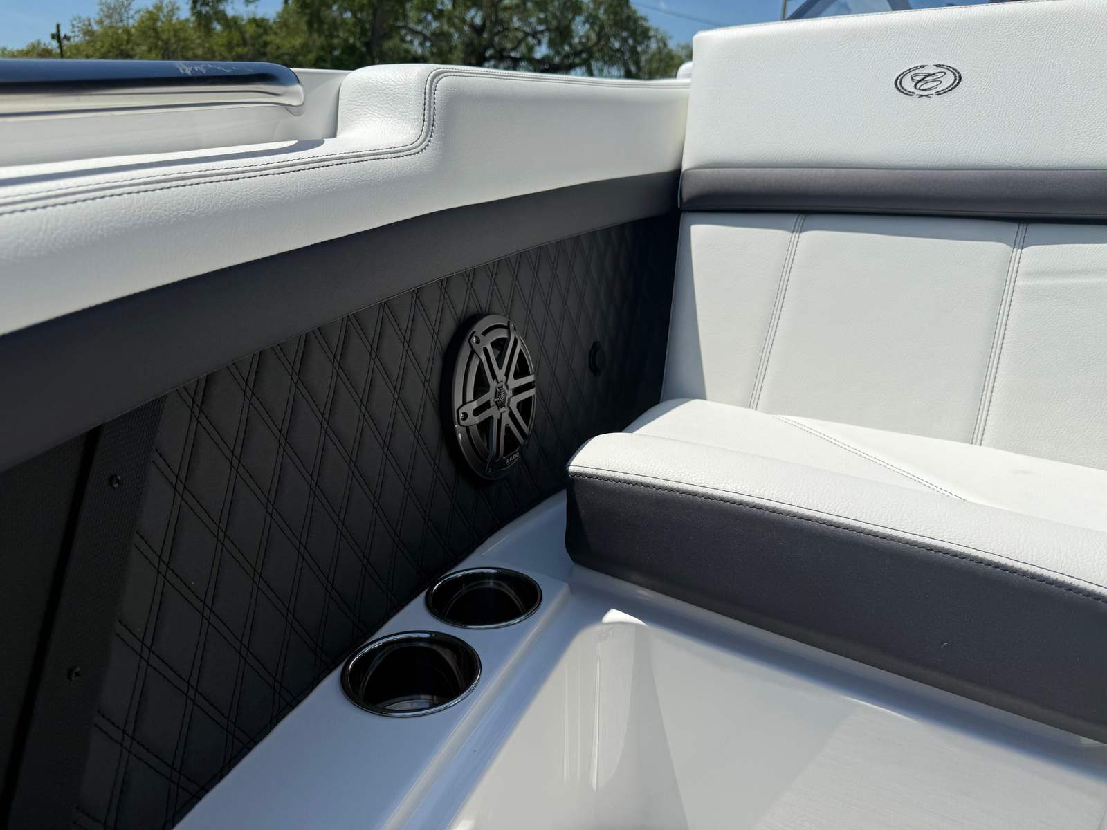 At the heart of the Cobalt R8 OB lies a dynamic twin-engine setup, featuring two Yamaha F200XCA outboards that deliver a combined 400 horsepower. This powerful configuration guarantees exhilarating acceleration, smooth cruising, and responsive handling, whether you’re slicing through waves or enjoying a leisurely ride. The Yamaha engines are renowned for their reliability and efficiency, ensuring that every journey is both thrilling and worry-free. With this level of performance, the R8 OB is perfectly suited for watersports, fast-paced adventures, and effortless navigation in a variety of conditions.
