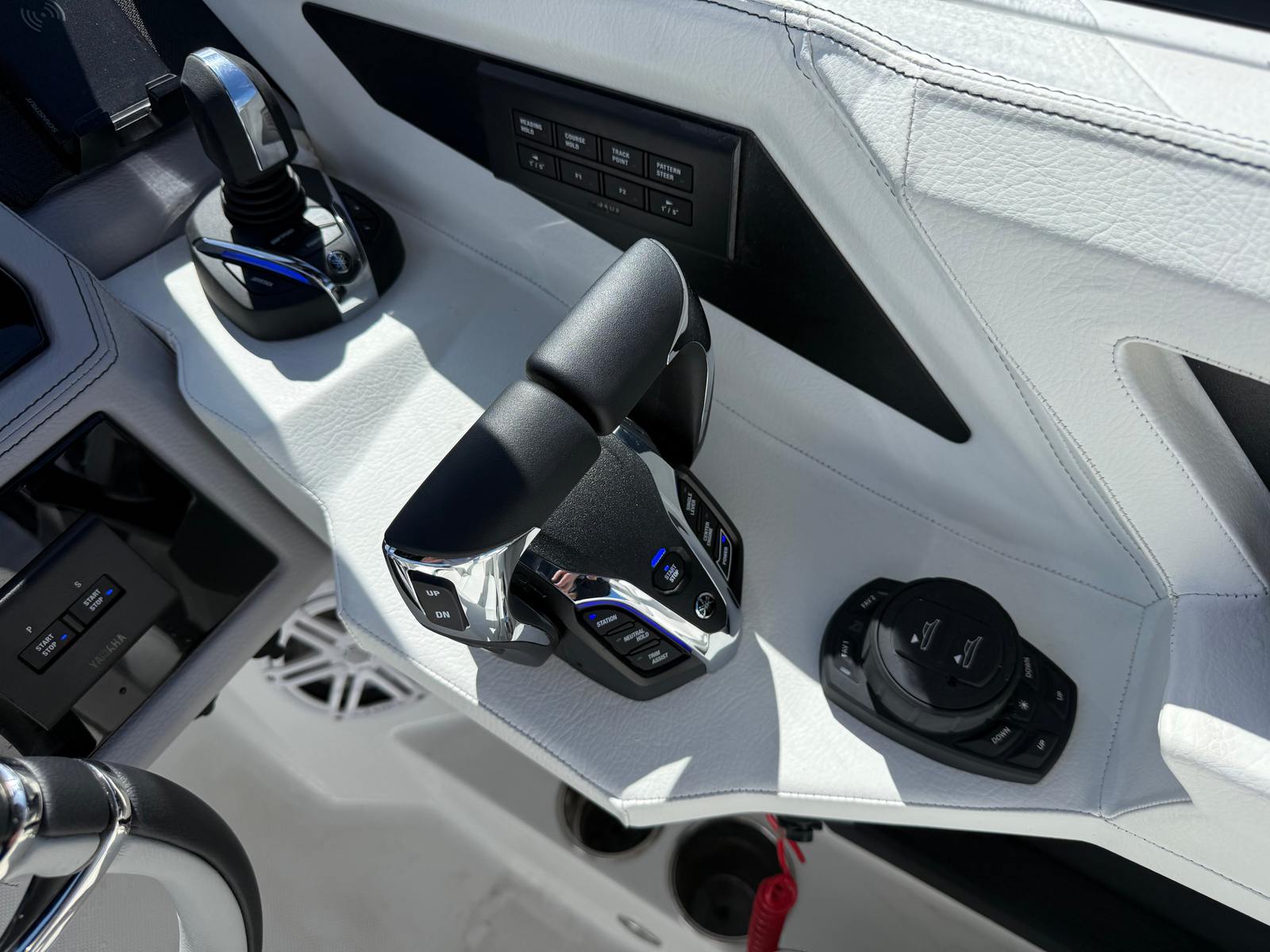The Cobalt R8 OB is packed with premium features that elevate your boating experience. The battery charger ensures your boat is always ready for action, while the board ladder on the port side makes it easy to get in and out of the water after swimming or water sports. The bow tonneau cover in elegant ebony protects your boat’s interior from the elements, and the Cobalt letters in white satin add a touch of sophistication to its striking profile.For those who love to entertain, the dinette table in solid teal with a cockpit receptacle provides a stylish and functional space for snacks, drinks, or games. Stainless steel docking lights enhance visibility and safety during evening outings, while the electric adjustable seat offers personalized comfort for the captain or guests. The engine flush system by Reverso for twins helps maintain your engines in peak condition, ensuring longevity and optimal performance. A flagpole with a flag adds a classic nautical touch, making your Cobalt R8 OB stand out wherever you go.