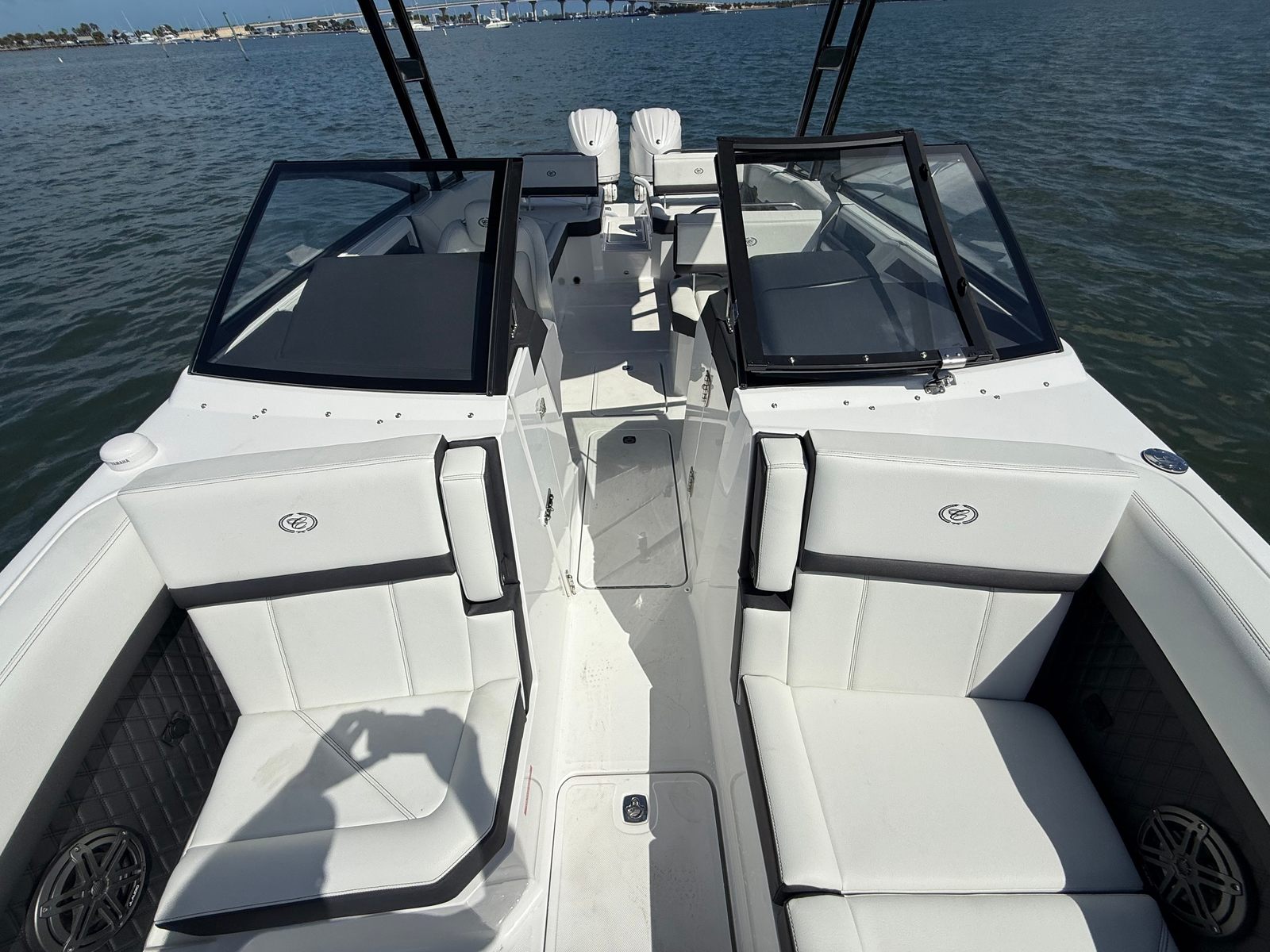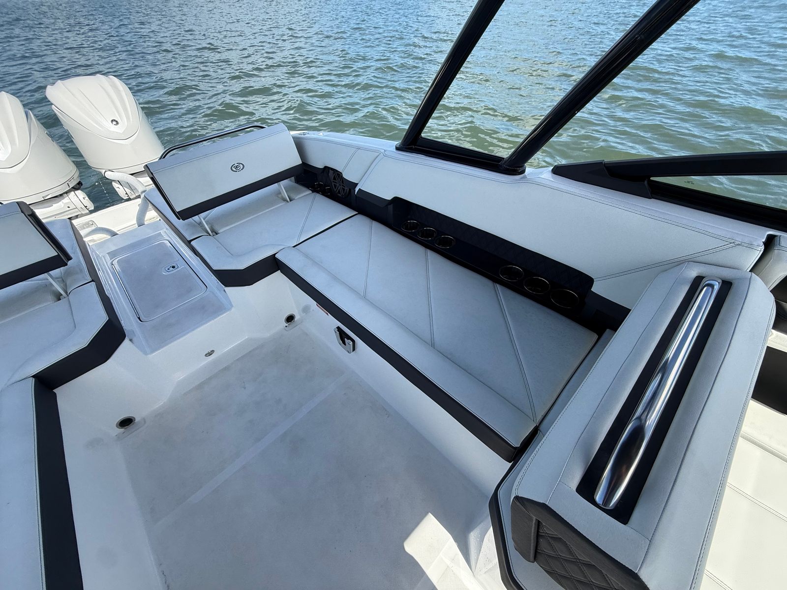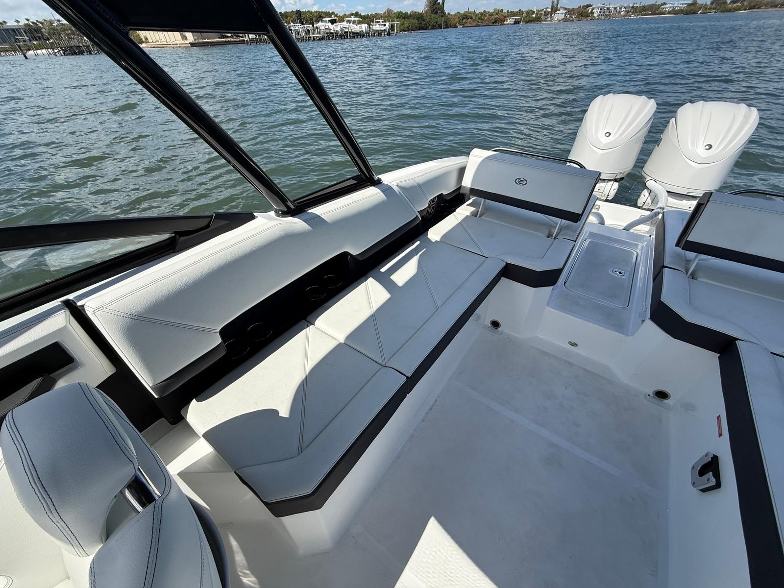 The 2026 Cobalt R8 OB is a brand-new Bowrider that measures an impressive 27.08 feet in length, offering ample space for relaxation and entertainment. Cobalt is renowned for its commitment to quality and craftsmanship, and the R8 OB is a testament to this legacy. Every inch of this boat is thoughtfully designed to maximize comfort, safety, and enjoyment, making it an ideal choice for both seasoned boaters and newcomers alike. Whether you are planning a day of water sports, a leisurely cruise, or a sunset gathering, the R8 OB provides the perfect platform for making memories on the water.