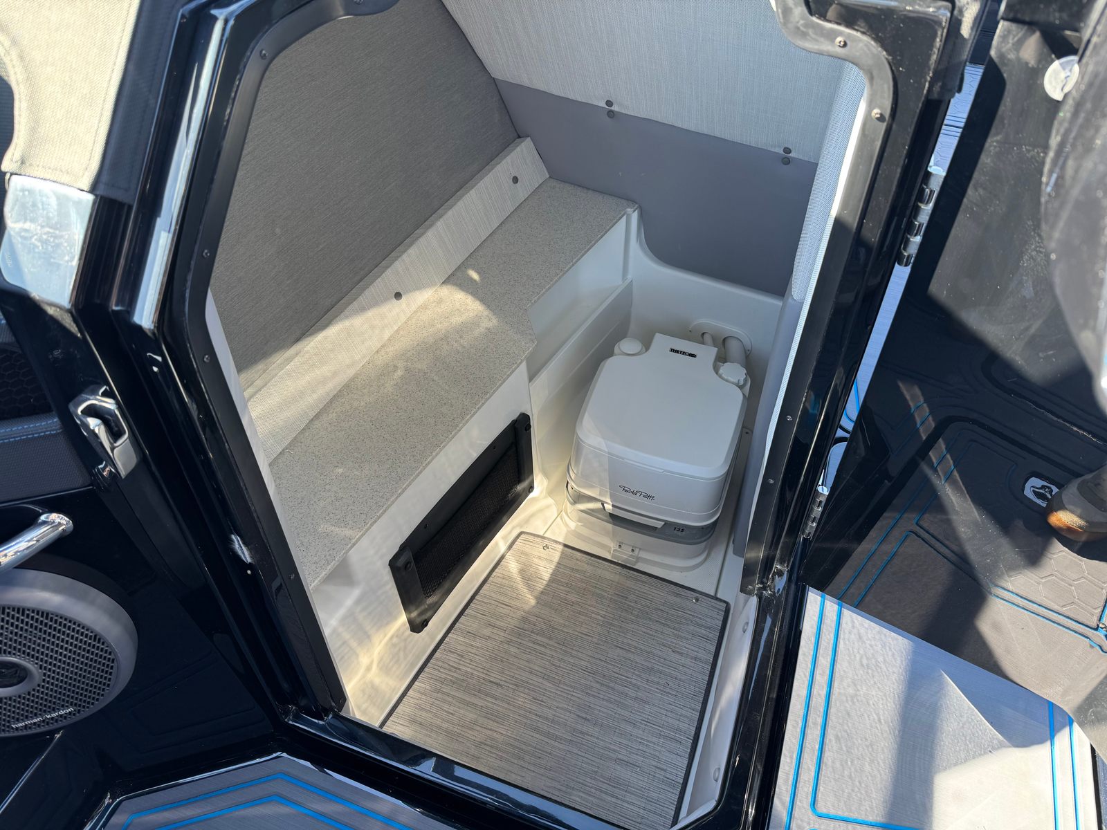 Owning the Cobalt R8 Surf means embracing a lifestyle of fun, relaxation, and adventure. The spacious Bowrider layout is ideal for social gatherings, allowing guests to spread out and enjoy the ride. The plush seating and thoughtful design make every journey comfortable, whether you’re cruising, sunbathing, or sharing a meal at the teak dinette table.The advanced features, such as the rear-facing camera and docking lights, simplify navigation and docking, making boating more accessible for everyone. The air compressor adds convenience for water sports enthusiasts, while the battery maintainer ensures your boat is always ready for action. The electric adjustable seat and bow filler cushions enhance comfort, so you can tailor your experience to your preferences.