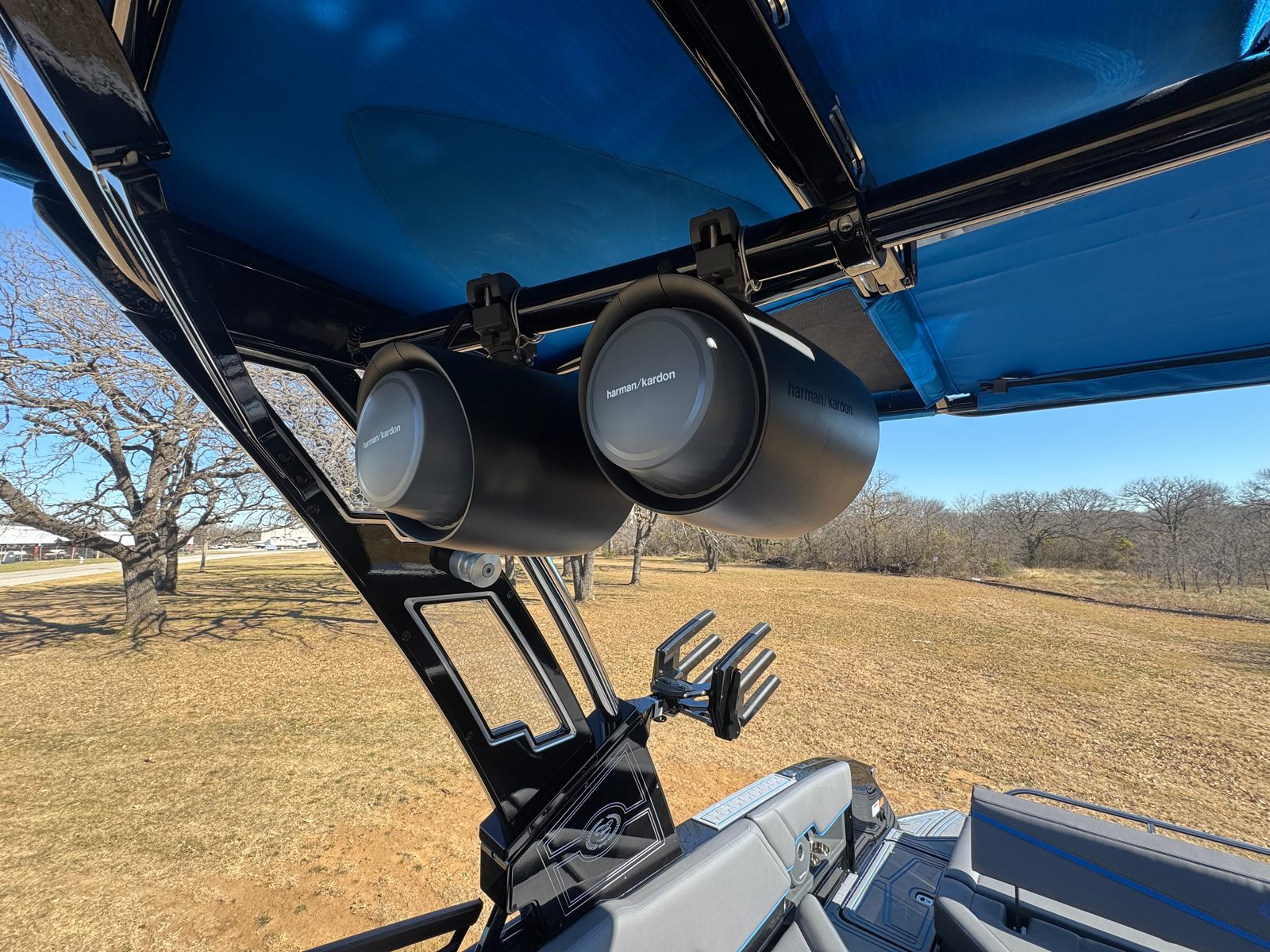 The 2026 Cobalt R8 Surf is packed with premium features that enhance every aspect of your time on the water. Enjoy the shade and comfort provided by the Aft Shade Sail in sleek black, perfect for sunny days and relaxing afternoons. The Air Compressor with Holder adds convenience for inflating water toys or equipment, while the Battery Maintainer/Charger (110V) keeps your boat’s electrical systems in top condition.Bow Filler Cushions offer additional seating and lounging space, ensuring everyone aboard has a comfortable spot to unwind. The Rear-Facing Camera provides added safety and ease when maneuvering or docking, giving you confidence in tight spaces. Distinctive Cobalt Letters in Black Satin add a touch of elegance and brand prestige.The Dinette Table, crafted from solid teak with a cockpit receptacle, creates a welcoming space for meals, snacks, or socializing. Stainless steel Docking Lights illuminate your path during evening outings, enhancing safety and style. The El Arch, Prisma, Black (Fold) Rotatshade in Pacific Blue, combines striking aesthetics with functional shade, while the Electric Adjustable Seat ensures personalized comfort for the captain.