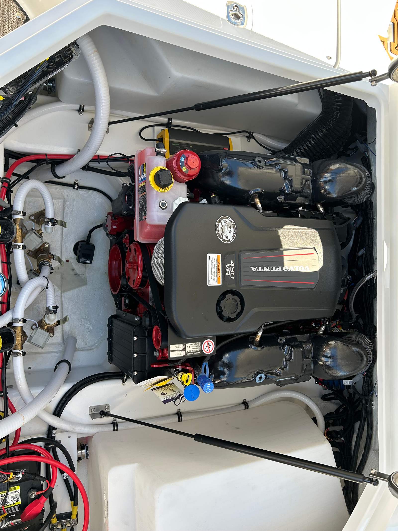 At the heart of the Cobalt R8 Surf is a powerful Volvo V8 430CE DP engine, delivering an exhilarating 430 horsepower. This single-engine setup ensures robust acceleration, smooth cruising, and reliable power for a variety of water activities. Whether you’re carving through waves, towing water sports enthusiasts, or simply enjoying a leisurely ride, the R8 Surf’s performance is both thrilling and dependable. The advanced engine technology also contributes to efficient fuel consumption, making every outing both exciting and economical.