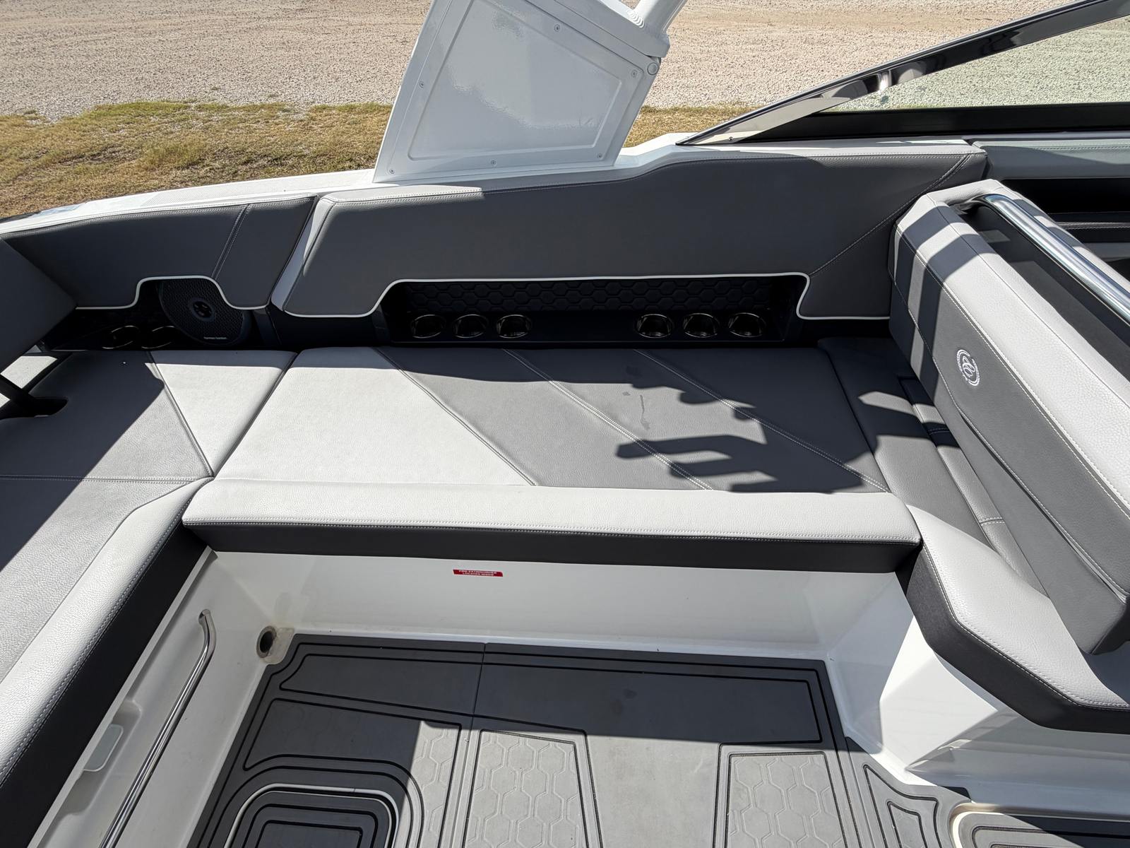 The 2023 Cobalt R8 Surf stands out as a premier bowrider, measuring an impressive 27 feet in length. This used boat is in excellent condition, reflecting the meticulous care it has received. With only 124 engine hours, it promises many more seasons of enjoyment on the water. The R8 Surf’s sleek lines and modern design make it a head-turner at any marina or lake, while its spacious layout ensures there is plenty of room for everyone to relax and enjoy the ride.