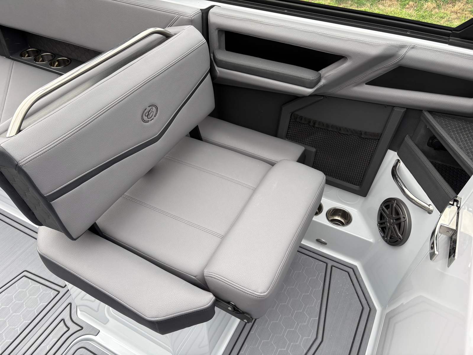 Beyond its impressive performance and stylish design, the 2026 Cobalt R8 Surf offers practical benefits that make boat ownership a breeze. The boat’s generous length provides ample storage for gear, water toys, and personal items, keeping the deck clutter-free and organized. The stainless steel docking lights enhance visibility and safety during nighttime docking, while the battery maintainer/charger ensures your boat is always powered up and ready to go.The El Arch Prisma Black Fold with Bimini adds versatility, allowing you to quickly adapt to changing weather conditions and keep your guests comfortable throughout the day. The forward-drive system simplifies docking and maneuvering in tight spaces, reducing stress and making every trip more enjoyable. With its combination of luxury, performance, and convenience, the R8 Surf is designed to fit seamlessly into your lifestyle.