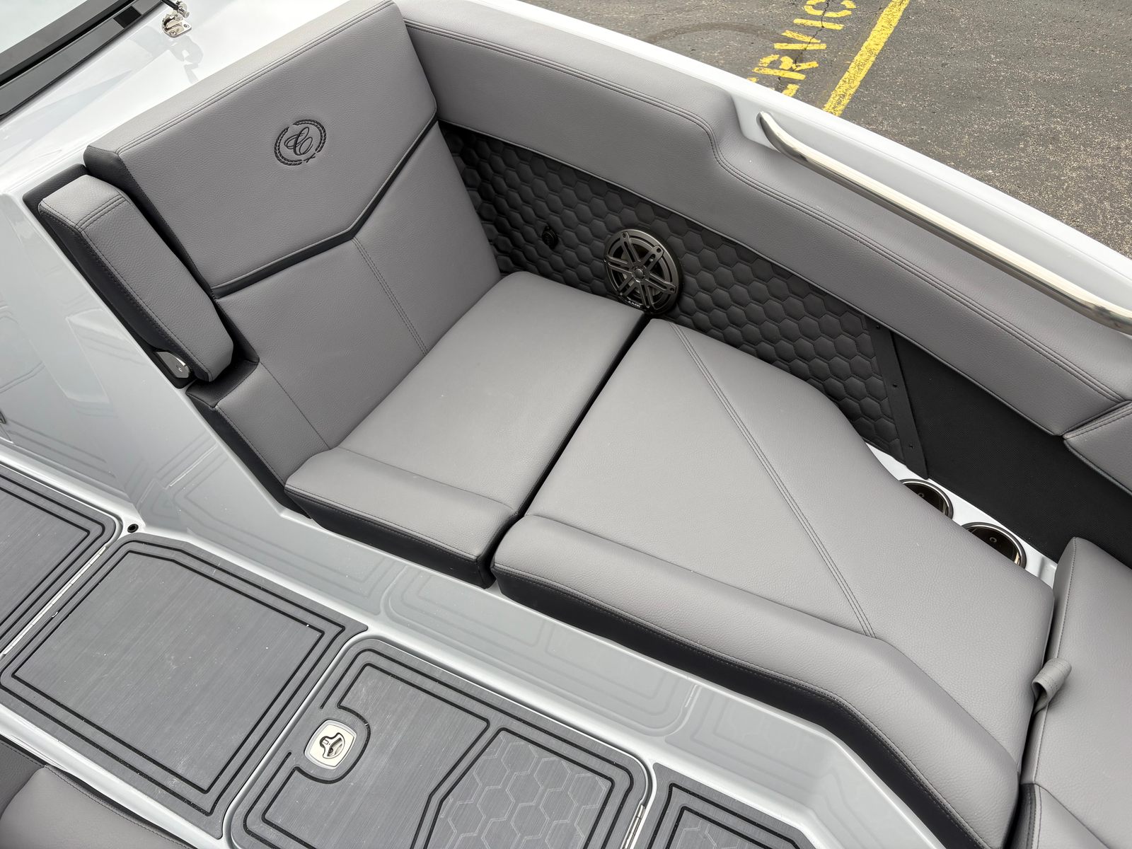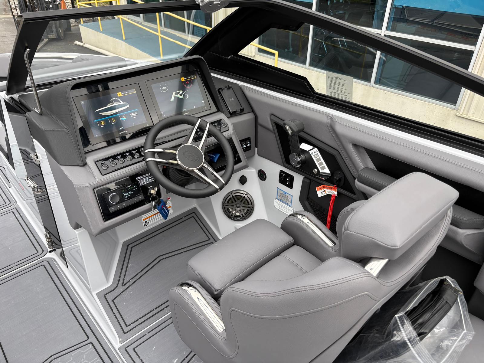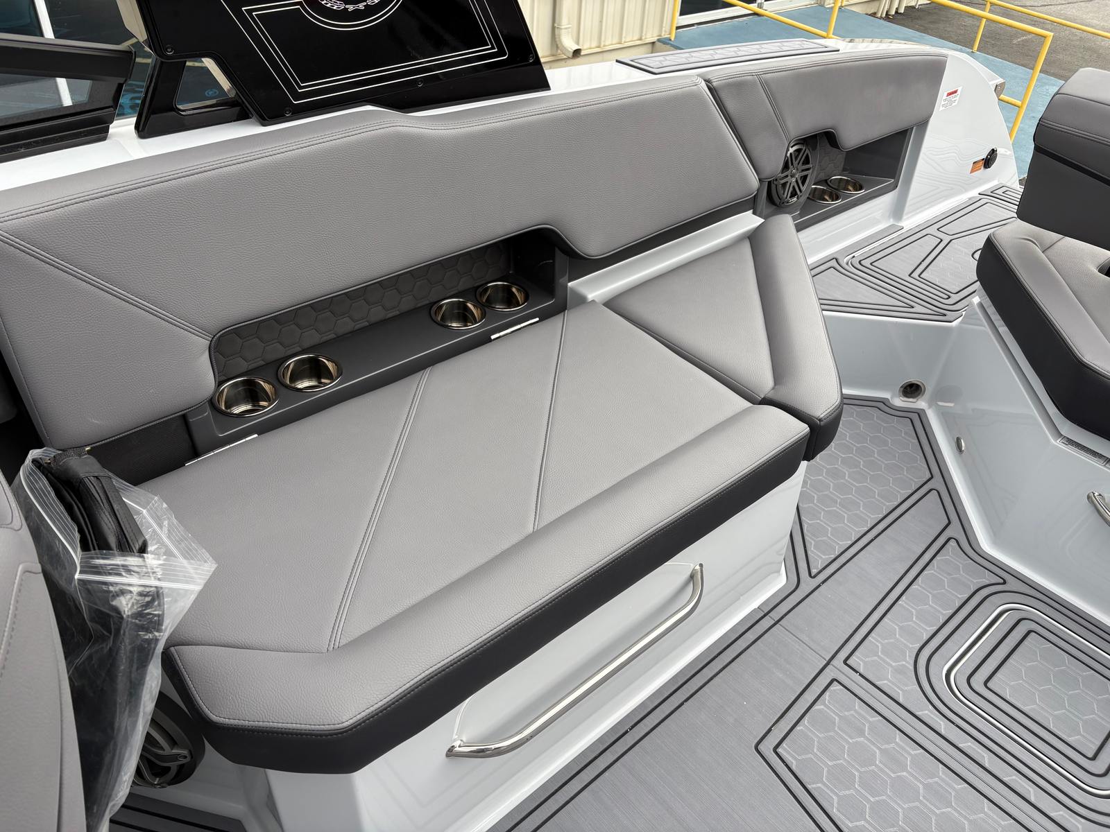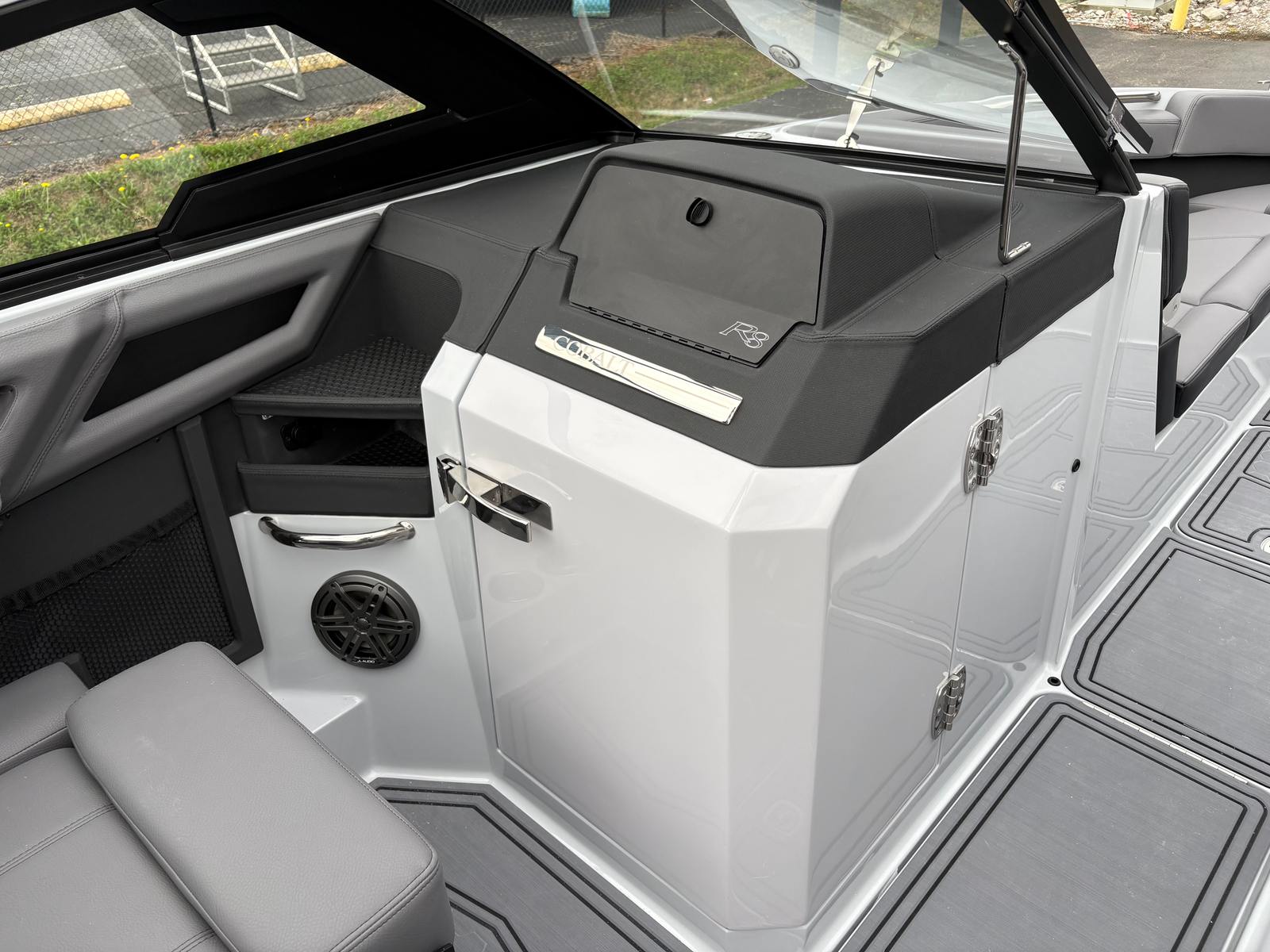 The 2026 Cobalt R8 Surf is loaded with premium features designed to enhance your time on the water. The Upper Surf Accent in Frost Gray and Surf Mid Hull Side in Rich Ebony create a visually striking exterior, complemented by the Graphite Gray accent stripe and Frost Gray hull bottom. The interior, finished in Slate and Ebony, offers a luxurious and comfortable environment for all passengers. The boat’s signature Cobalt Letters in Black Satin add a touch of elegance, while the stainless steel docking lights provide both style and functionality for evening outings.One of the standout features of this bowrider is the El Arch Prisma Black Fold with Bimini in Ebony, offering shade and protection from the sun while maintaining the boat’s sleek profile. The integrated battery maintainer/charger ensures your boat is always ready for action, providing peace of mind during long days on the water. Every detail of the R8 Surf is crafted with precision, reflecting Cobalt’s commitment to quality and innovation.