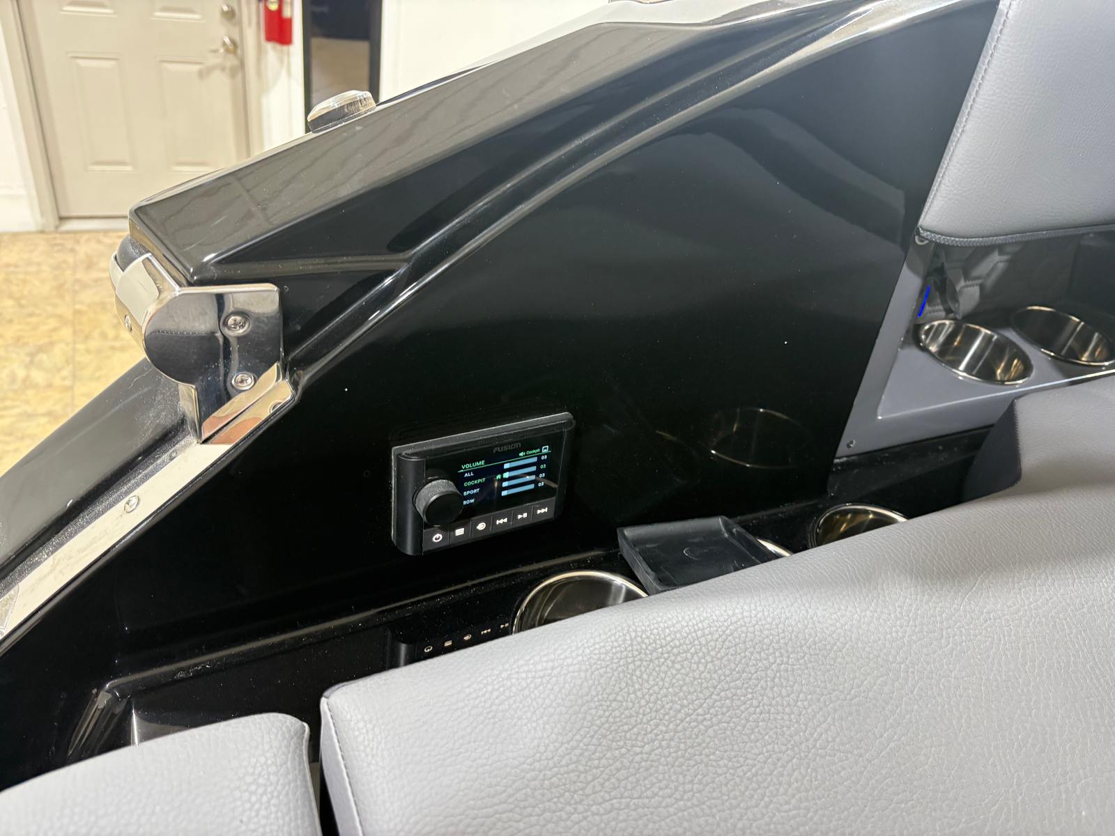 The Cobalt R8 Surf is designed with practicality in mind, making ownership a breeze. The Gunwale Step simplifies boarding, especially when carrying gear or assisting children and guests. The four Fender Clips with Line make docking quick and hassle-free, reducing stress and protecting your investment.The SP BLK Alum Windshield with Model DES offers excellent visibility and protection, ensuring a comfortable ride in varying weather conditions. The Reaview Mirror, PTM with Custom Cover, enhances safety during water sports, allowing the captain to keep an eye on riders at all times.The wireless phone charger/holder adds a modern touch, keeping your devices charged and within reach. The underwater lighting not only enhances the boat’s aesthetic appeal but also improves visibility during nighttime outings, making evening cruises safer and more enjoyable.