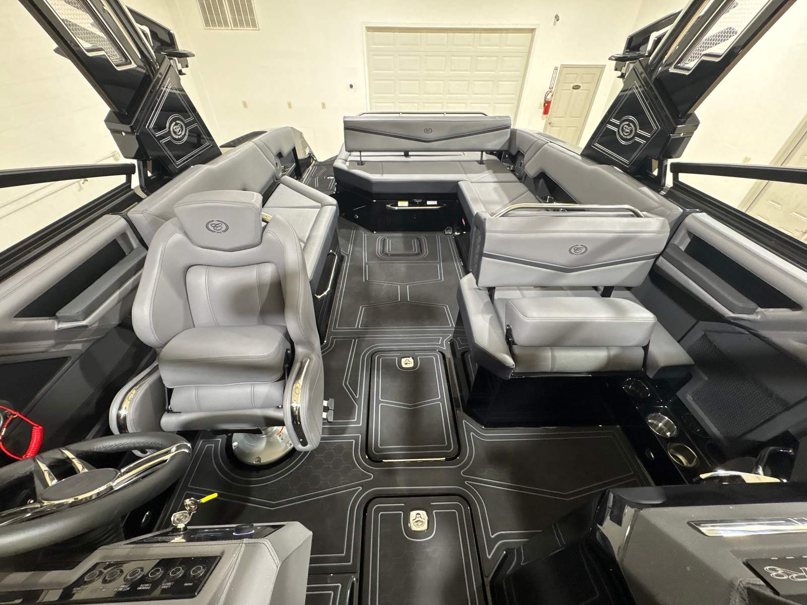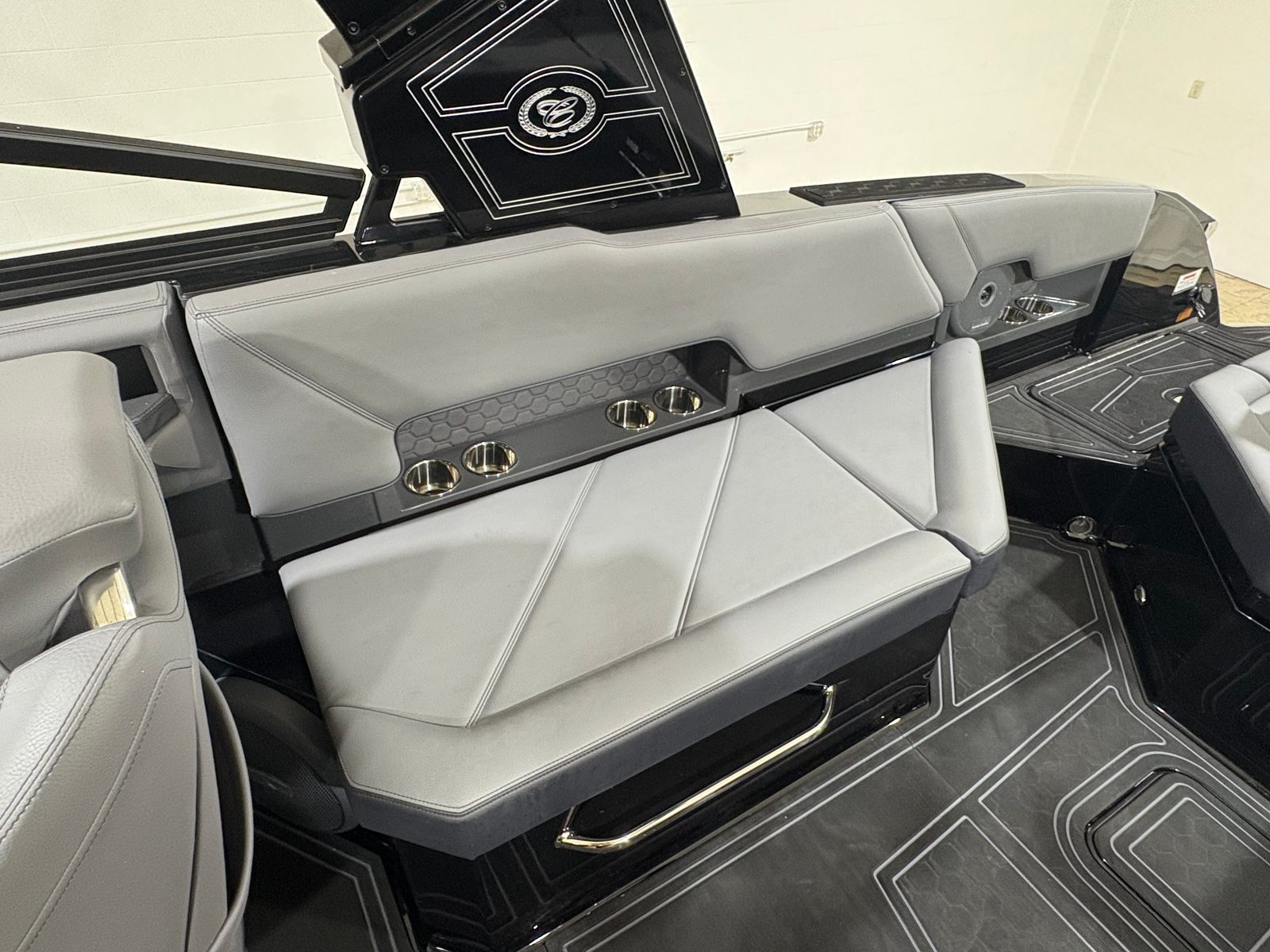 At the heart of the Cobalt R8 Surf is a robust engine boasting 430 horsepower. This single-engine setup is engineered for both power and efficiency, providing smooth acceleration and responsive handling. Whether you’re carving through waves or cruising at a leisurely pace, the R8 Surf delivers a dynamic boating experience that’s second to none.The advanced surf technology integrated into this model ensures optimal wave creation for wake surfing and other water sports. With the Surf Gate Accent in Ebony, you can easily customize your wake for riders of all skill levels, making every outing on the water exciting and memorable.