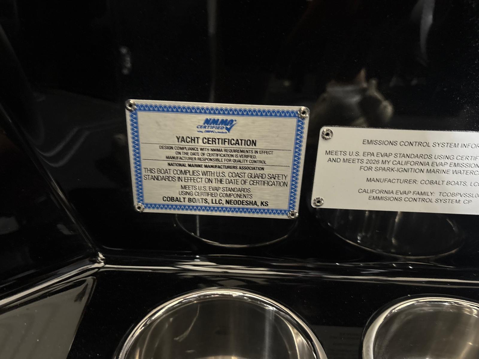 The 2026 Cobalt R8 Surf Bowrider is packed with premium features designed to enhance comfort, convenience, and safety. The Sof-Trac Mat provides a plush, non-slip surface throughout the boat, including the helm footrest in Ebony and Gray, ensuring a secure and comfortable experience for everyone on board. The Gunwale Step makes boarding and disembarking effortless, while the SP BLK Alum Windshield with Model DES offers protection from the elements and adds a sleek, modern touch.For added convenience, the boat is equipped with four Fender Clips with Line, making docking and mooring simple and stress-free. The Reaview Mirror, PTM with Custom Cover, ensures optimal visibility for the captain, enhancing safety during water sports and navigation. The wireless phone charger/holder keeps your devices powered and accessible, so you can stay connected while enjoying your time on the water.Underwater lighting in red, green, and blue creates a captivating ambiance during evening cruises, adding a touch of luxury to your boating experience. The thoughtful design and high-quality materials used throughout the R8 Surf reflect Cobalt’s commitment to excellence and innovation.