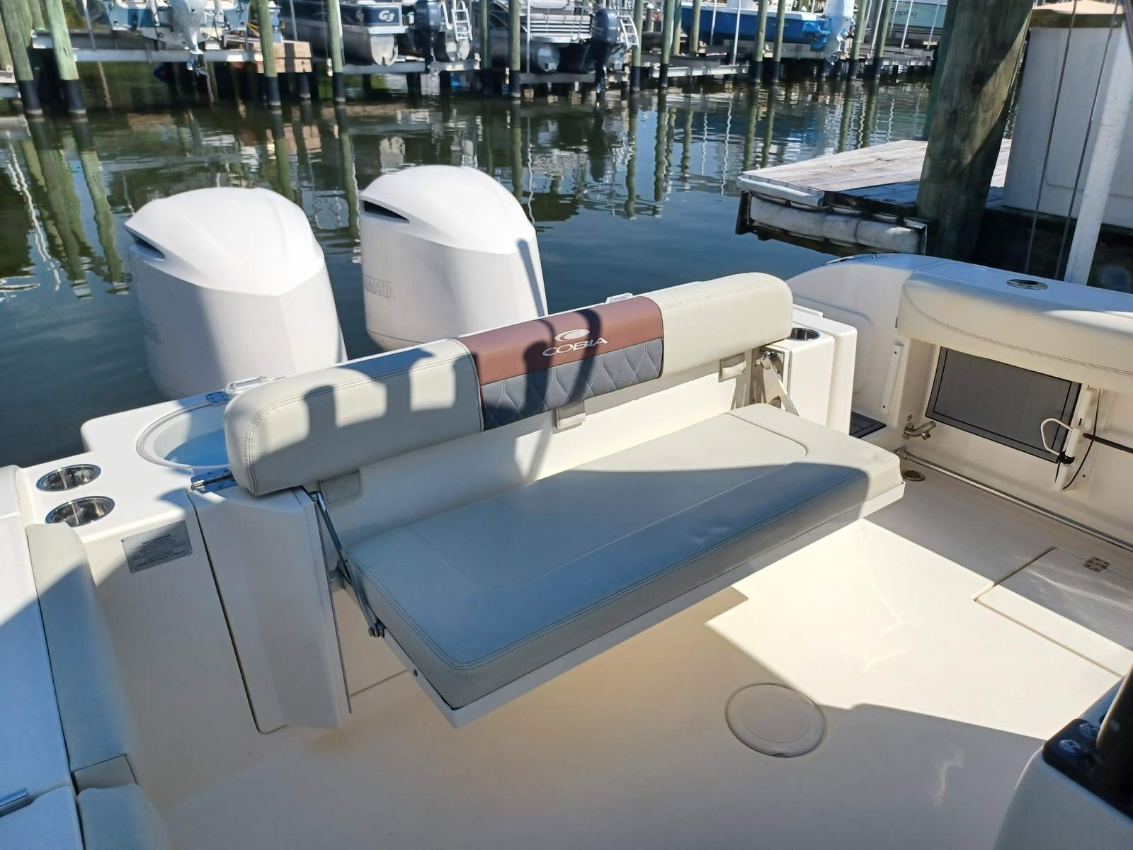 At the heart of the 2021 Cobia 301 CC are two powerful engines, delivering a combined 600 horsepower. This impressive setup ensures that the Cobia 301 CC is more than capable of handling a variety of water conditions, from calm bays to choppy offshore waters. The dual-engine configuration provides not only speed and agility but also enhanced reliability and maneuverability, making docking and navigating tight spaces a breeze. Whether you are chasing the next big catch or simply enjoying a day on the water, the performance of this Center Console boat for sale will exceed your expectations. The responsive handling and robust power make every outing an exhilarating experience, while the efficient design helps you make the most of every gallon of fuel.