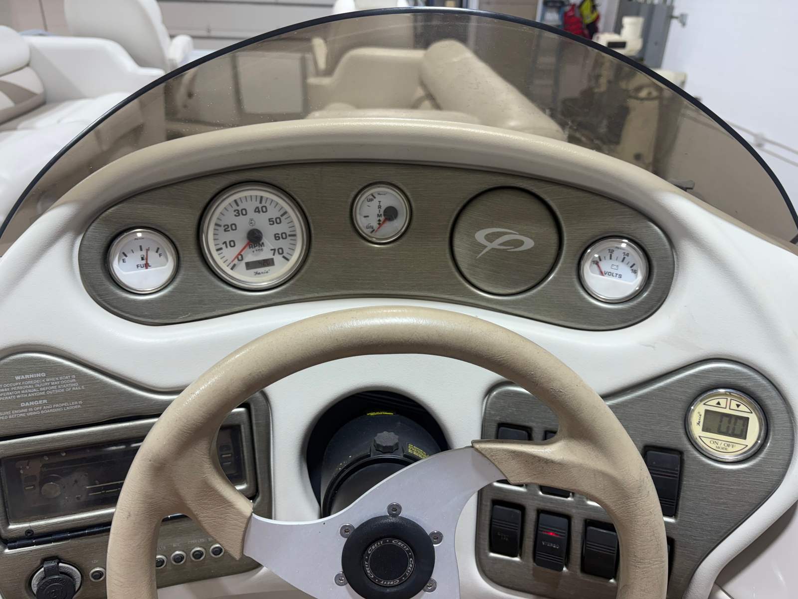 Powering this Crest III XRS 2570 is a single engine with 135 horsepower and 420 engine hours. This reliable setup ensures smooth and efficient performance, making it easy to navigate both calm and choppy waters. The 135-horsepower engine provides plenty of power for leisurely cruises, towing water toys, or reaching your favorite fishing spot with ease. With its responsive handling and dependable operation, this pontoon boat for sale is designed to deliver a pleasurable and worry-free boating experience every time you set out.