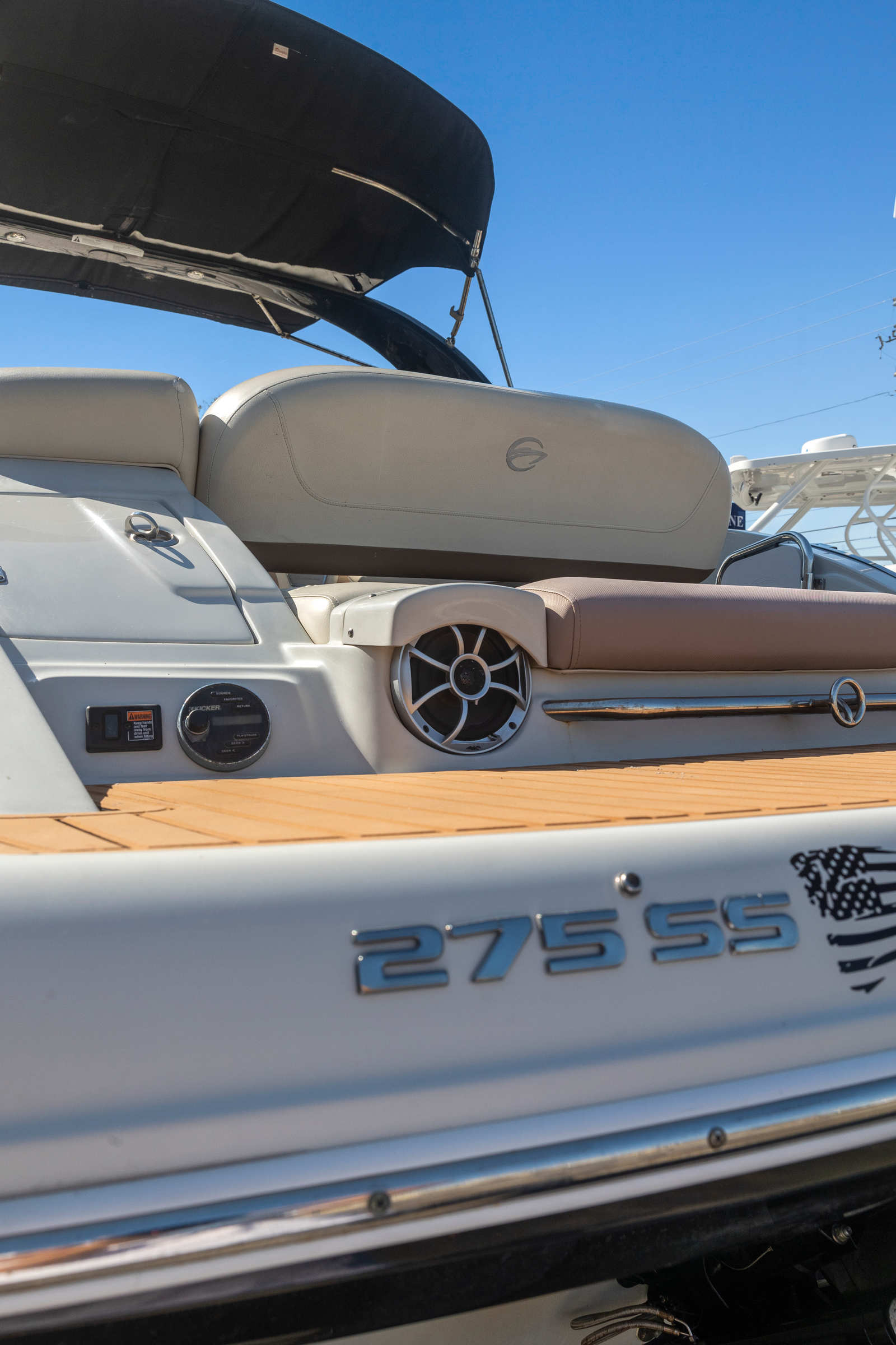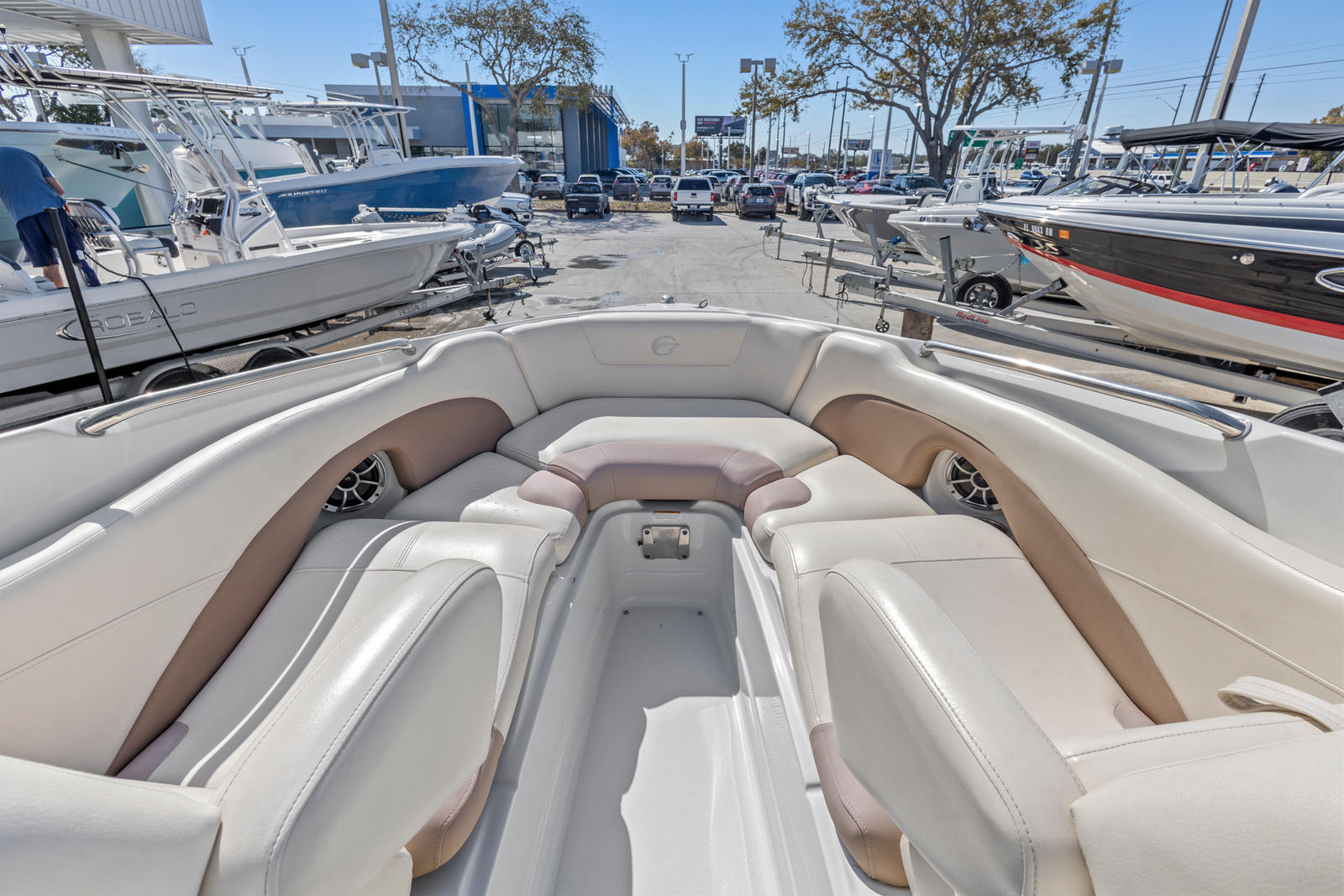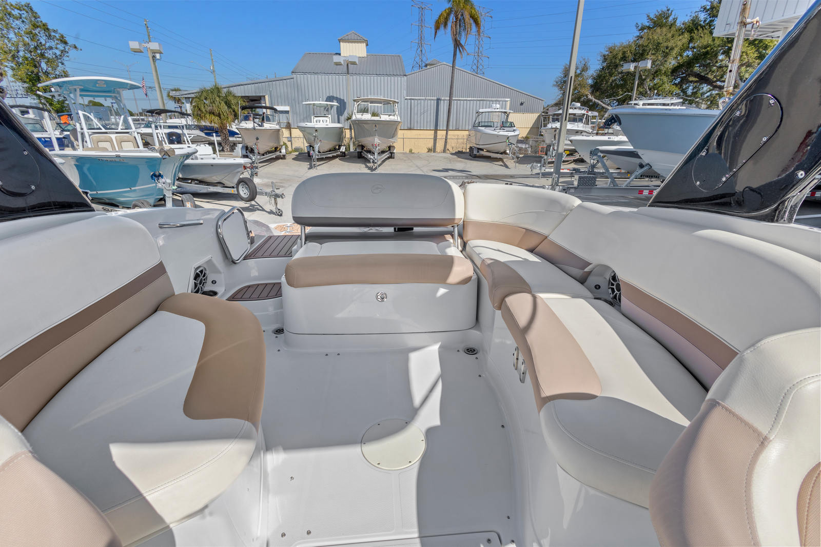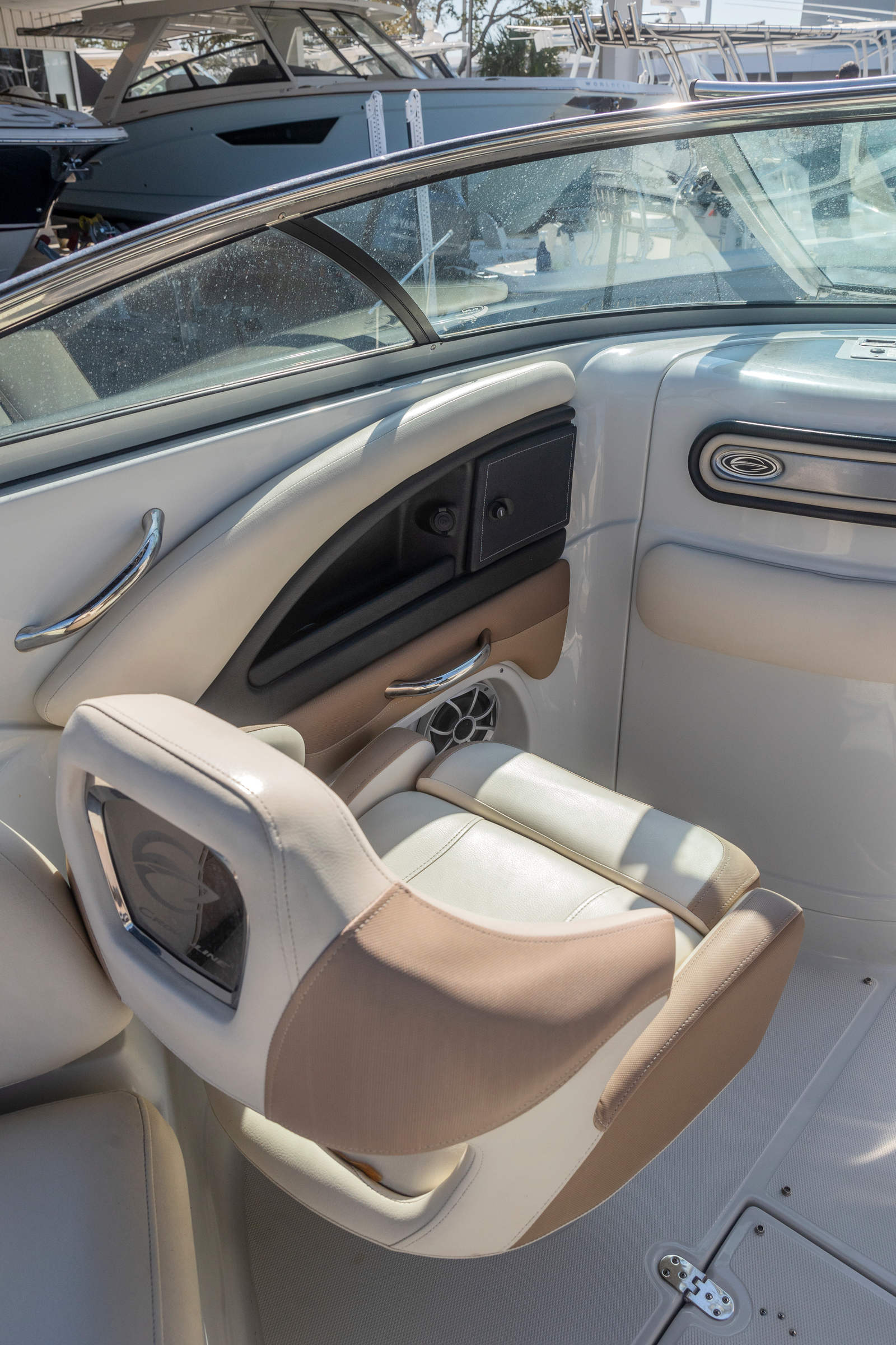 The Crownline 275 SS Bowrider is packed with features that enhance your time on the water. Its spacious bow seating invites guests to relax and soak up the sun, while the open cockpit layout encourages socializing and fun. The ergonomic helm station puts you in command, offering clear sightlines and intuitive controls for stress-free navigation. The boat’s generous length provides plenty of room for lounging, dining, or stretching out after a swim. Storage compartments are thoughtfully integrated throughout, keeping gear organized and out of the way. The single engine setup simplifies maintenance and maximizes fuel efficiency, making this bowrider boat for sale both practical and enjoyable.