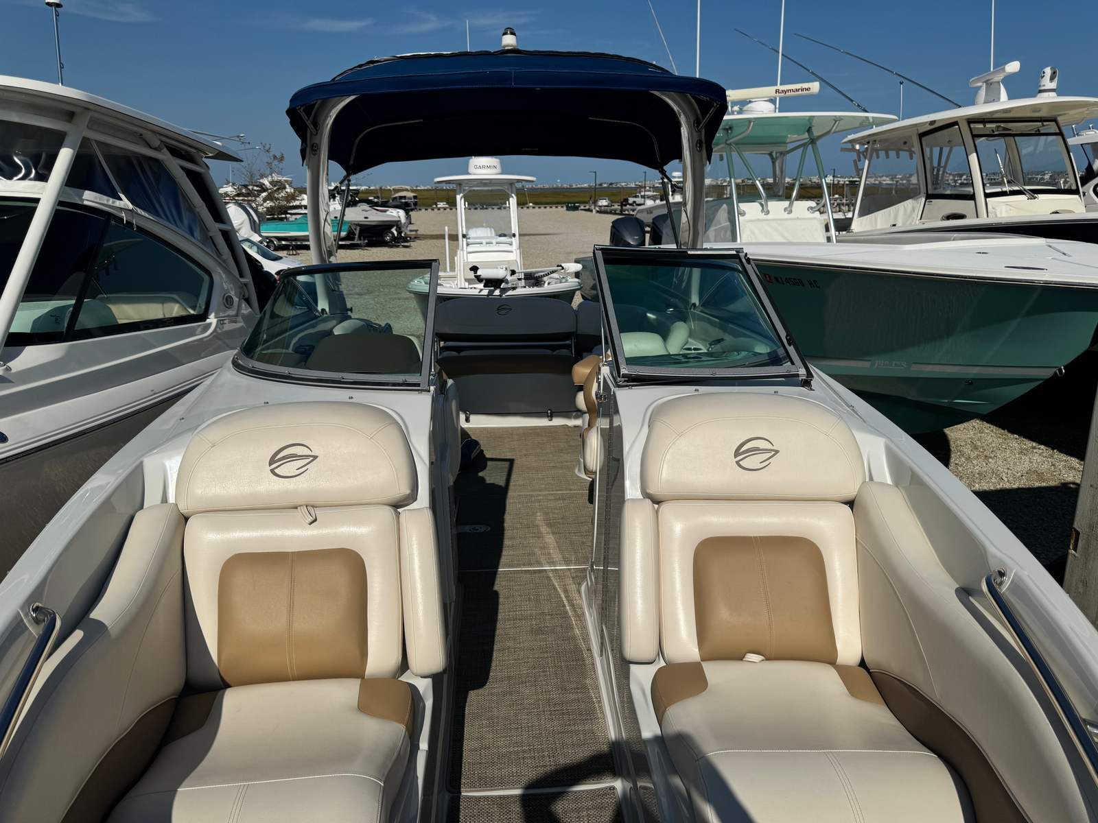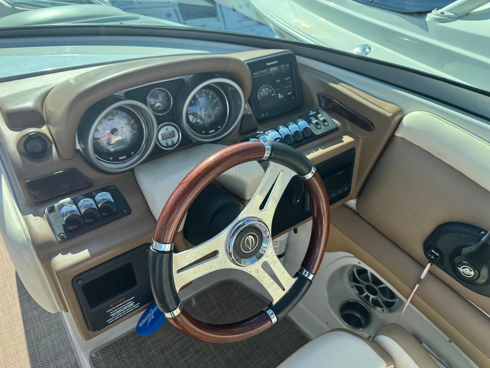 At the heart of the Crownline 285 SS is a powerful single engine delivering an impressive 300 horsepower. This robust engine ensures exhilarating acceleration, smooth cruising, and reliable performance whether you are towing water toys, exploring distant coves, or simply enjoying a leisurely day on the lake. The 300-horsepower output provides the perfect balance of speed and efficiency, making this bowrider boat for sale a joy to operate for both seasoned boaters and newcomers alike. With 320 engine hours, the engine has proven its reliability and is primed for many more adventures on the water.