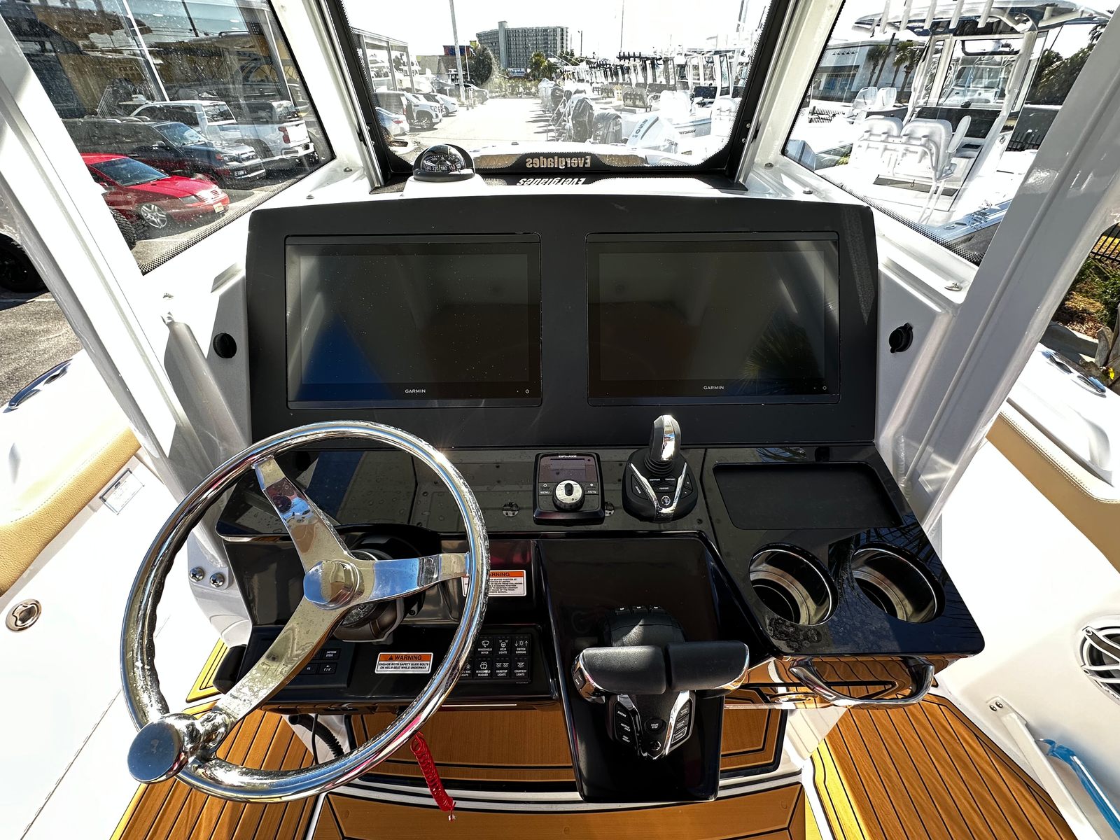 Owning the Everglades 285 CC means embracing a lifestyle of fun, relaxation, and adventure. The spacious layout and ergonomic design make it easy to entertain guests, host family outings, or enjoy a peaceful day on the water. The high-performance twin Yamaha engines ensure you can reach your favorite destinations quickly and efficiently, while the advanced navigation and control systems provide peace of mind and ease of use for boaters of all experience levels.The upgraded JL audio system and customizable LED lighting set the stage for memorable gatherings, whether you’re anchored at a sandbar or cruising under the stars. The Mediterranean Bow Shade offers a cool retreat from the sun, making long days on the water more enjoyable for everyone on board. With its innovative features and luxurious touches, the Everglades 285 CC is designed to maximize your enjoyment and create lasting memories with family and friends.