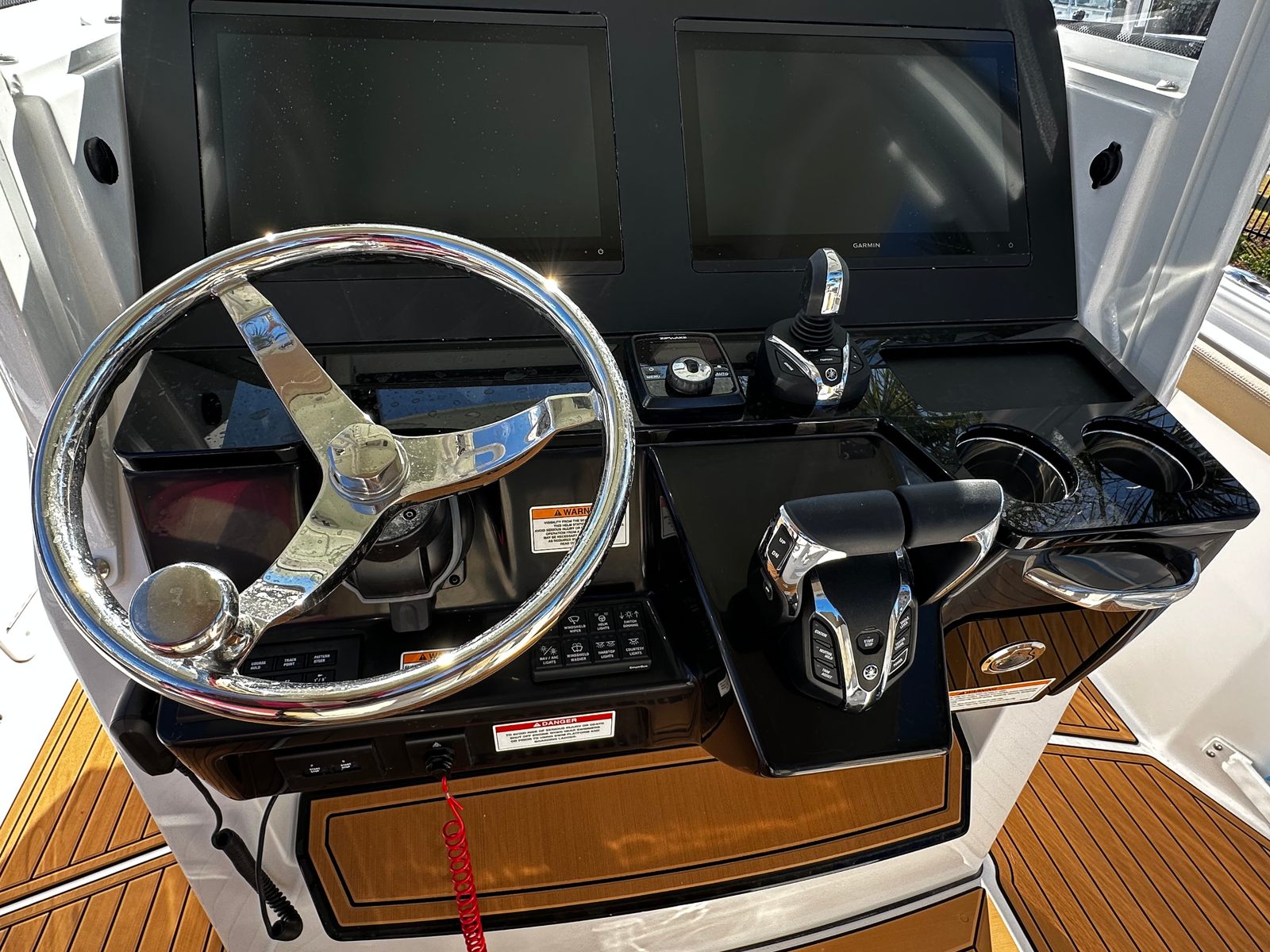 Power and precision define the 2025 Everglades 285 CC. Outfitted with twin Yamaha F300 engines, this center console boasts a combined 600 horsepower and only 2 engine hours, ensuring you’re getting a vessel in pristine, like-new condition. The advanced engine setup provides exhilarating acceleration, smooth cruising, and reliable performance for both offshore adventures and leisurely cruises. The inclusion of an autopilot and joystick for Yamaha EX at the main station elevates your boating experience, making navigation effortless and docking a breeze. Whether you’re chasing the horizon or maneuvering into a tight slip, the Everglades 285 CC delivers unmatched control and confidence.