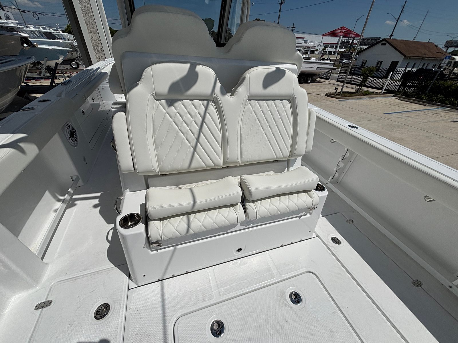 Power and precision are at the heart of the Everglades 315 CC. Equipped with twin Yamaha F350 engines in a striking white finish, this center console boat boasts a combined 700 horsepower, ensuring exhilarating speed and responsive handling. The advanced Auto Pilot & Joystick for Yamaha EX at the main station provides effortless control, making navigation smooth and intuitive, even in challenging conditions. Whether you are maneuvering in tight marinas or cruising at high speeds, the Everglades 315 CC delivers a driving experience that is both thrilling and confidence-inspiring.
