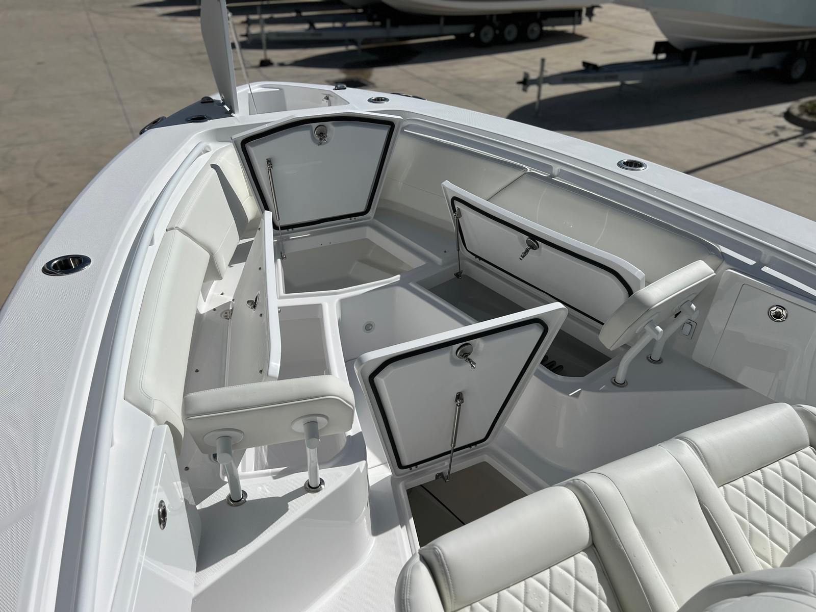 Owning the Everglades 335 CC means enjoying a world of fun and relaxation on the water. The spacious Center Console layout is perfect for socializing, with plenty of room for friends and family to spread out and enjoy the ride. The upgraded helm seat and premium finishes create a luxurious environment, while the advanced lighting systems set the mood for evening cruises or dockside gatherings. The combination of powerful twin Yamaha engines and intuitive joystick control makes piloting this boat a breeze, whether you’re docking in tight spaces or exploring new waters.The Everglades 335 CC is designed for versatility, offering the perfect platform for fishing, water sports, or simply unwinding in the sun. The chiller plate for the mezzanine ensures your drinks and snacks are always cold, while the hardtop provides shade and protection from the elements. With its robust construction and thoughtful features, this Center Console boat for sale is built to deliver years of enjoyment and unforgettable memories.