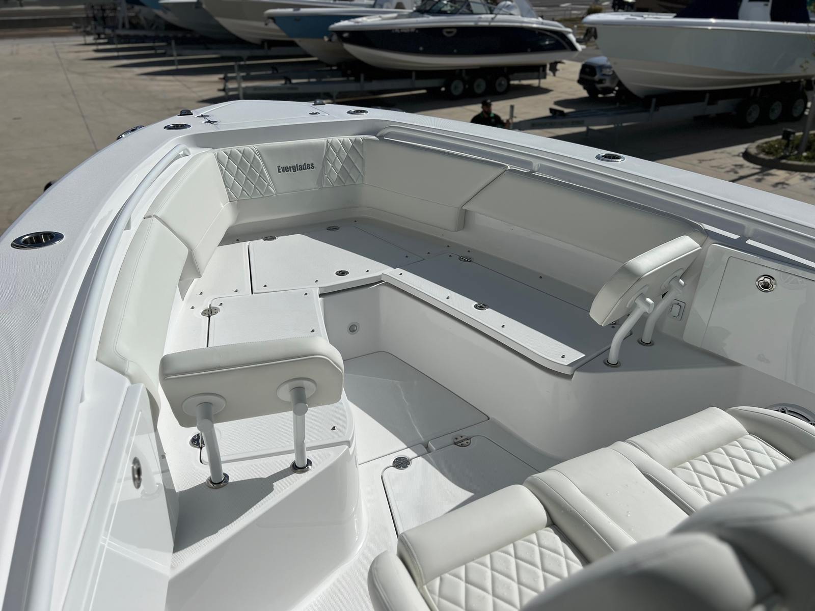 The Everglades 335 CC shines in a variety of scenarios, making it the ultimate choice for boaters who want it all. For family outings, the spacious deck and comfortable seating provide the perfect setting for picnics, swimming, and relaxation. Anglers will appreciate the advanced features and ample space for casting and reeling in the big catch, while the chiller plate keeps bait and refreshments cool throughout the day.Luxury getaways are elevated by the boat’s premium finishes, upgraded helm seat, and customizable lighting, creating an inviting atmosphere for romantic evenings or entertaining friends. The Everglades 335 CC is equally at home cruising along the coast, exploring hidden coves, or anchoring at your favorite sandbar. Its versatility and performance make it a standout choice for anyone seeking adventure, comfort, and style on the water.