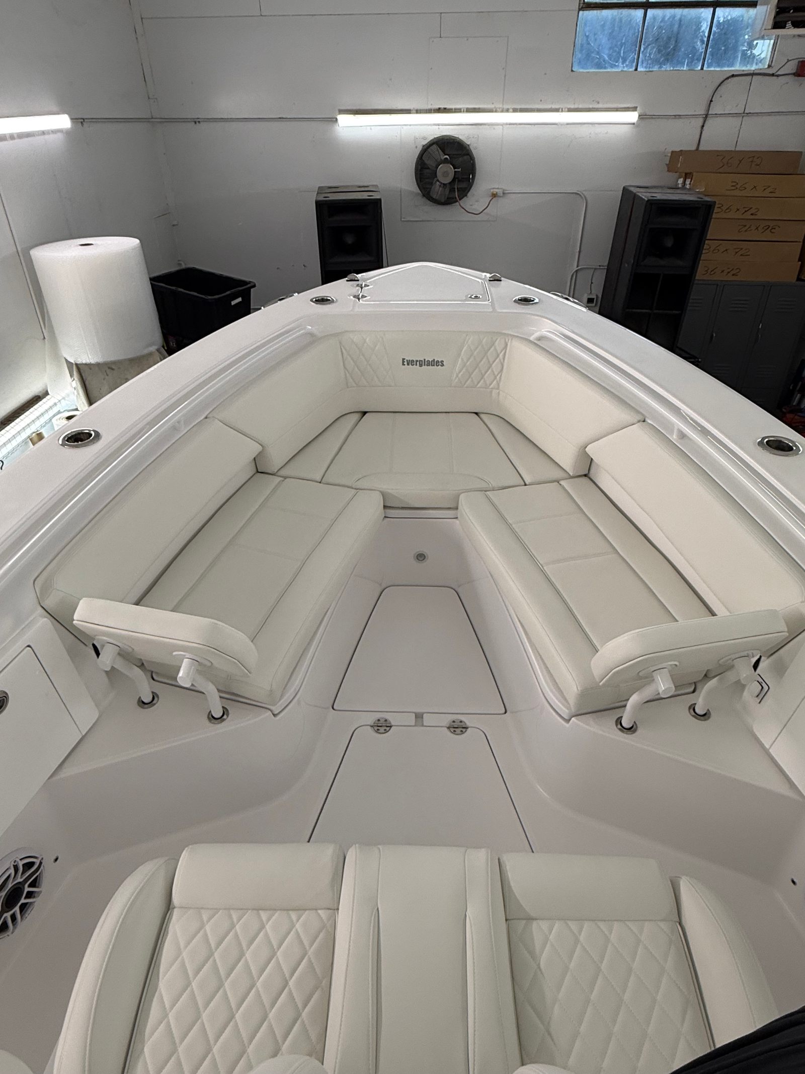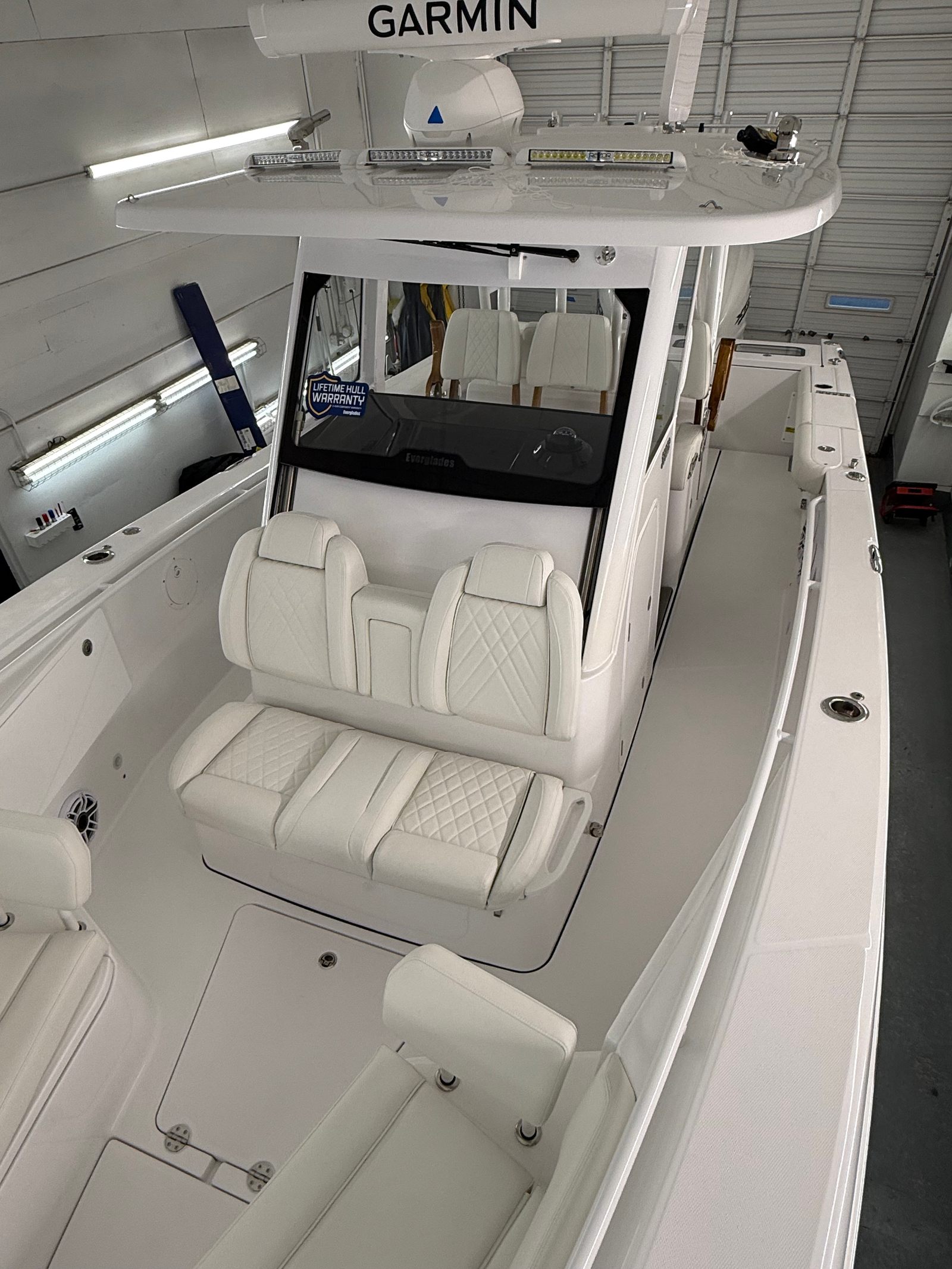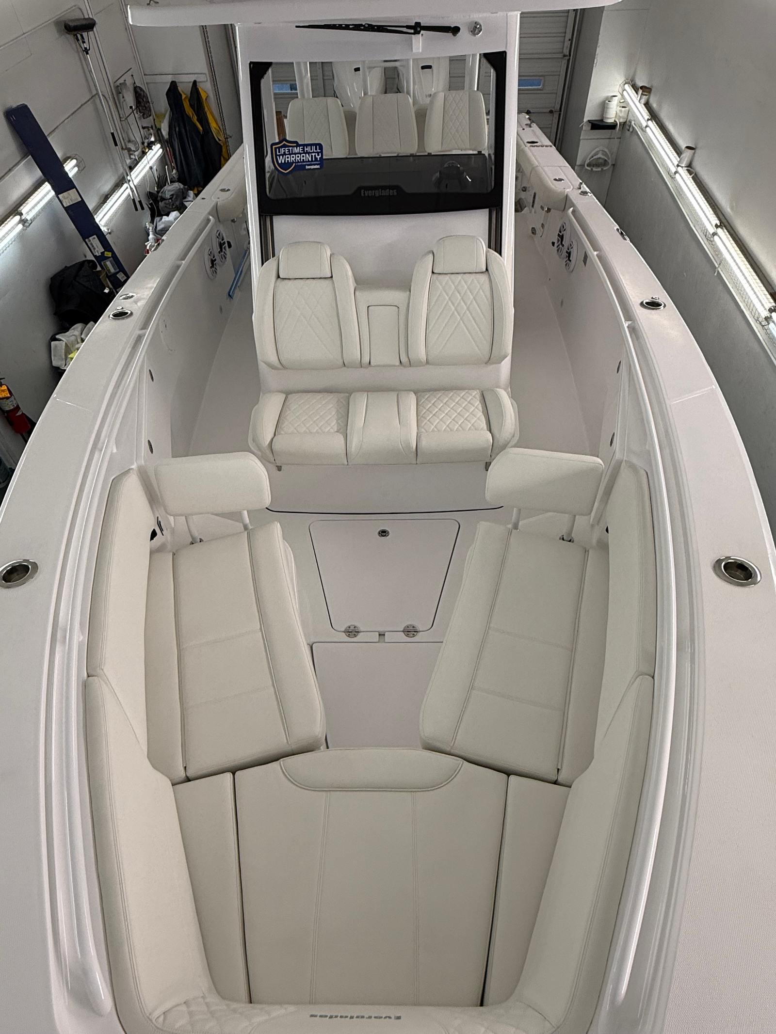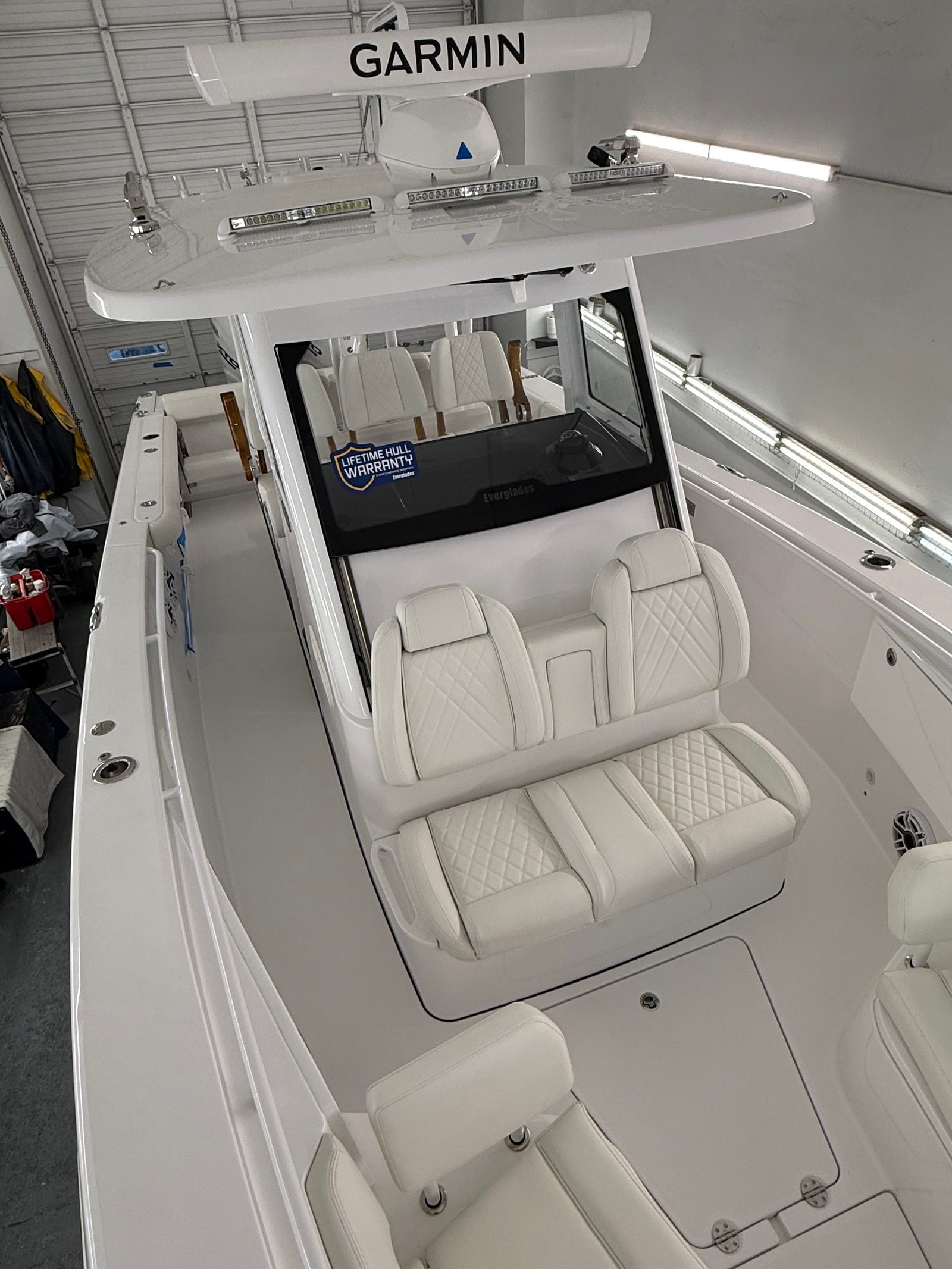 The Everglades 335 CC shines in a variety of scenarios, making it the perfect choice for families, anglers, and boating enthusiasts alike. Picture yourself hosting a sunset cruise with friends, enjoying the cool breeze under the Mediterranean bow shade. Imagine heading out for an early morning fishing trip, with the 18-foot collapsible outriggers ready for action and the chiller plate keeping your catch fresh.This Center Console boat for sale is equally at home on weekend getaways, offering plenty of space for relaxation and recreation. Its powerful engines and advanced navigation features make it ideal for exploring new destinations, while its comfortable seating and stylish design ensure that every journey is memorable. Whether you’re seeking adventure, relaxation, or a little bit of both, the Everglades 335 CC is ready to exceed your expectations.