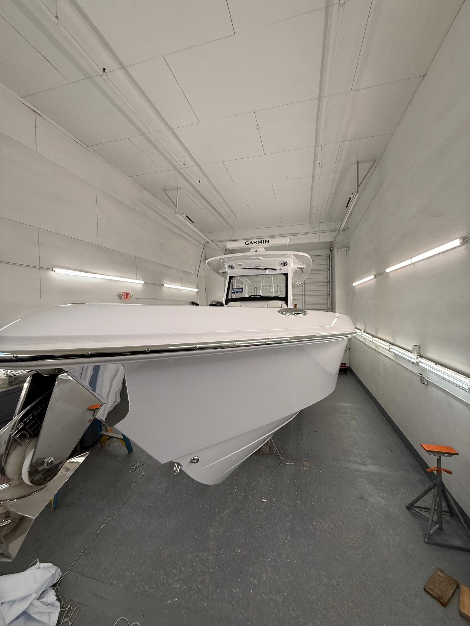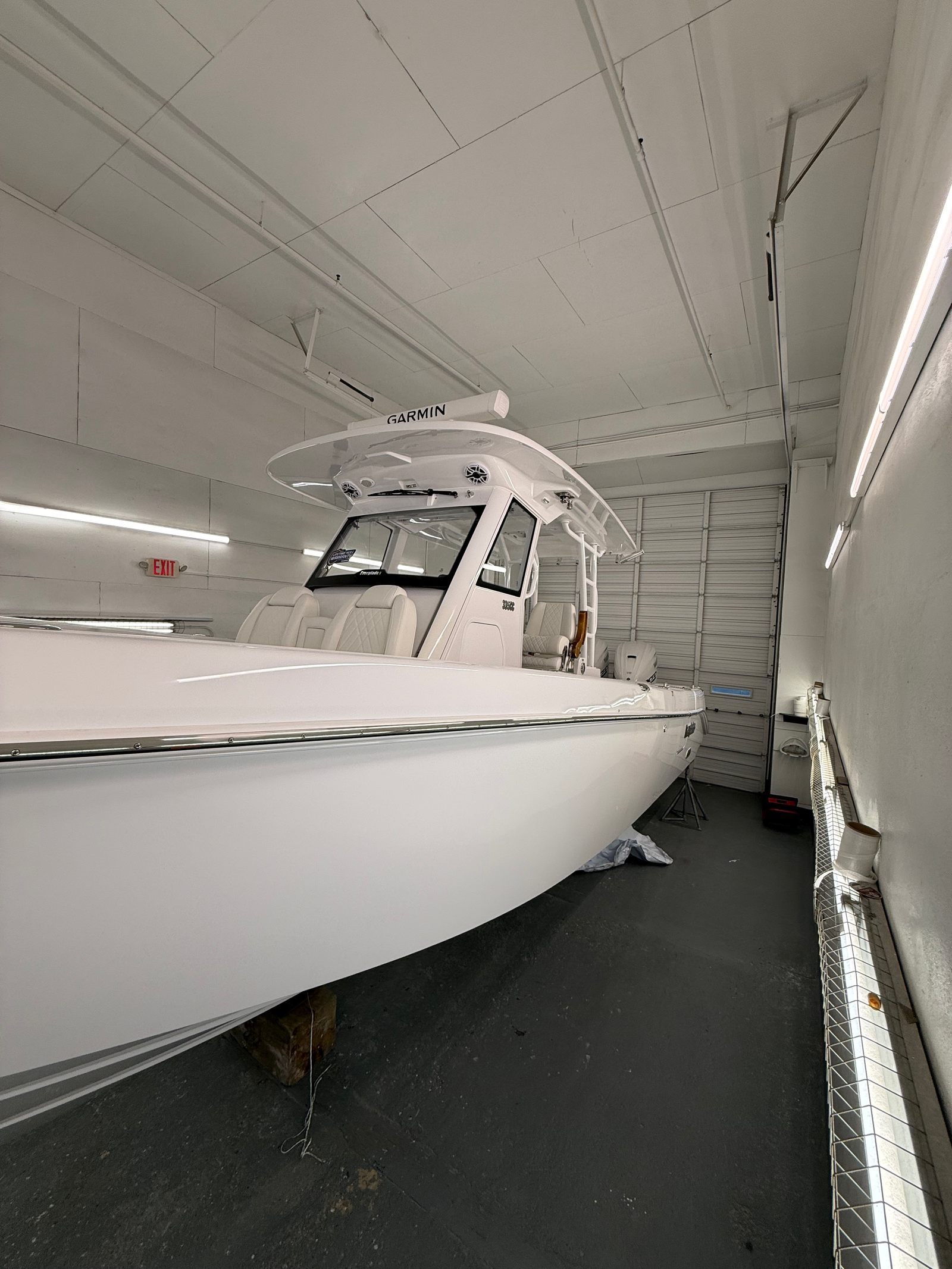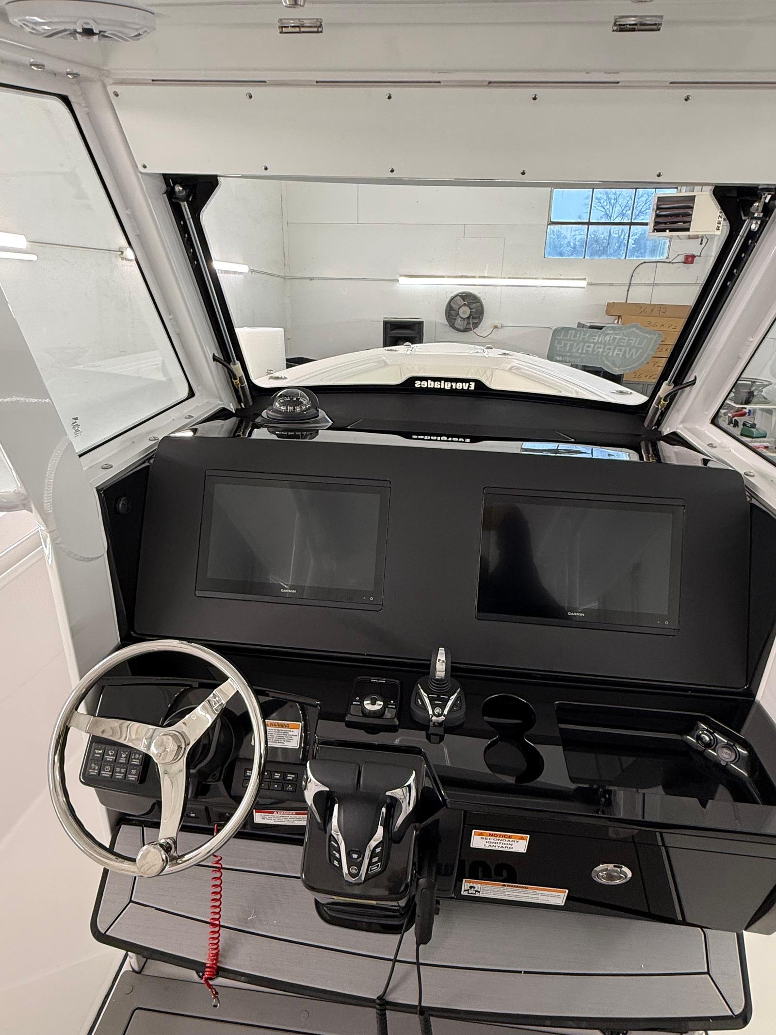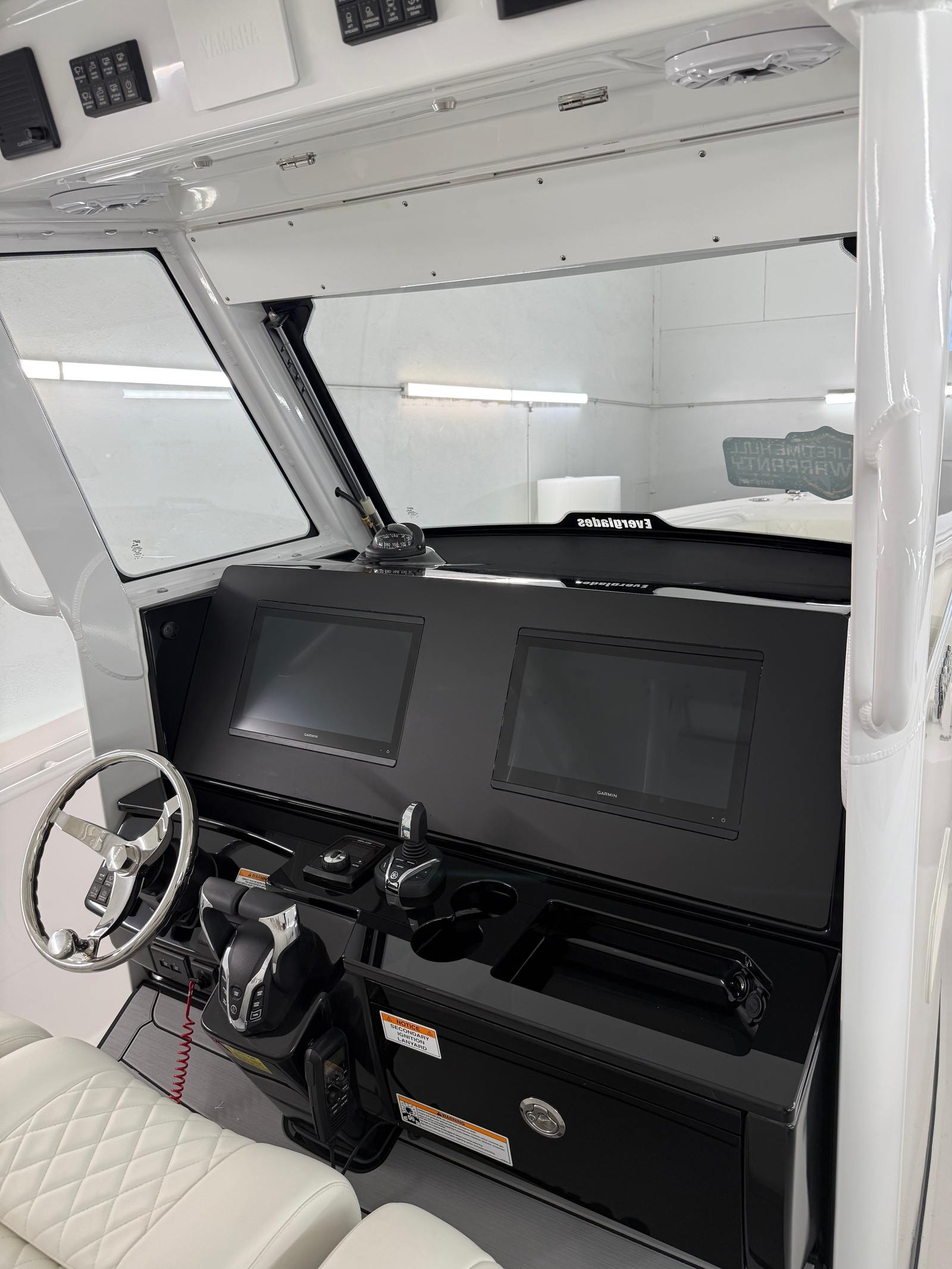 Powering the Everglades 335 CC are twin Yamaha White engines, each delivering a robust 450 horsepower for a combined total of 900 horsepower. This exceptional engine setup ensures exhilarating speed, smooth handling, and reliable performance in various water conditions. The inclusion of an auto pilot and joystick for Yamaha EX at the main station makes navigation effortless, allowing you to maneuver with precision and confidence. Whether you’re cruising along the coastline or heading out to deeper waters, the 335 CC’s advanced propulsion system guarantees a thrilling ride every time.