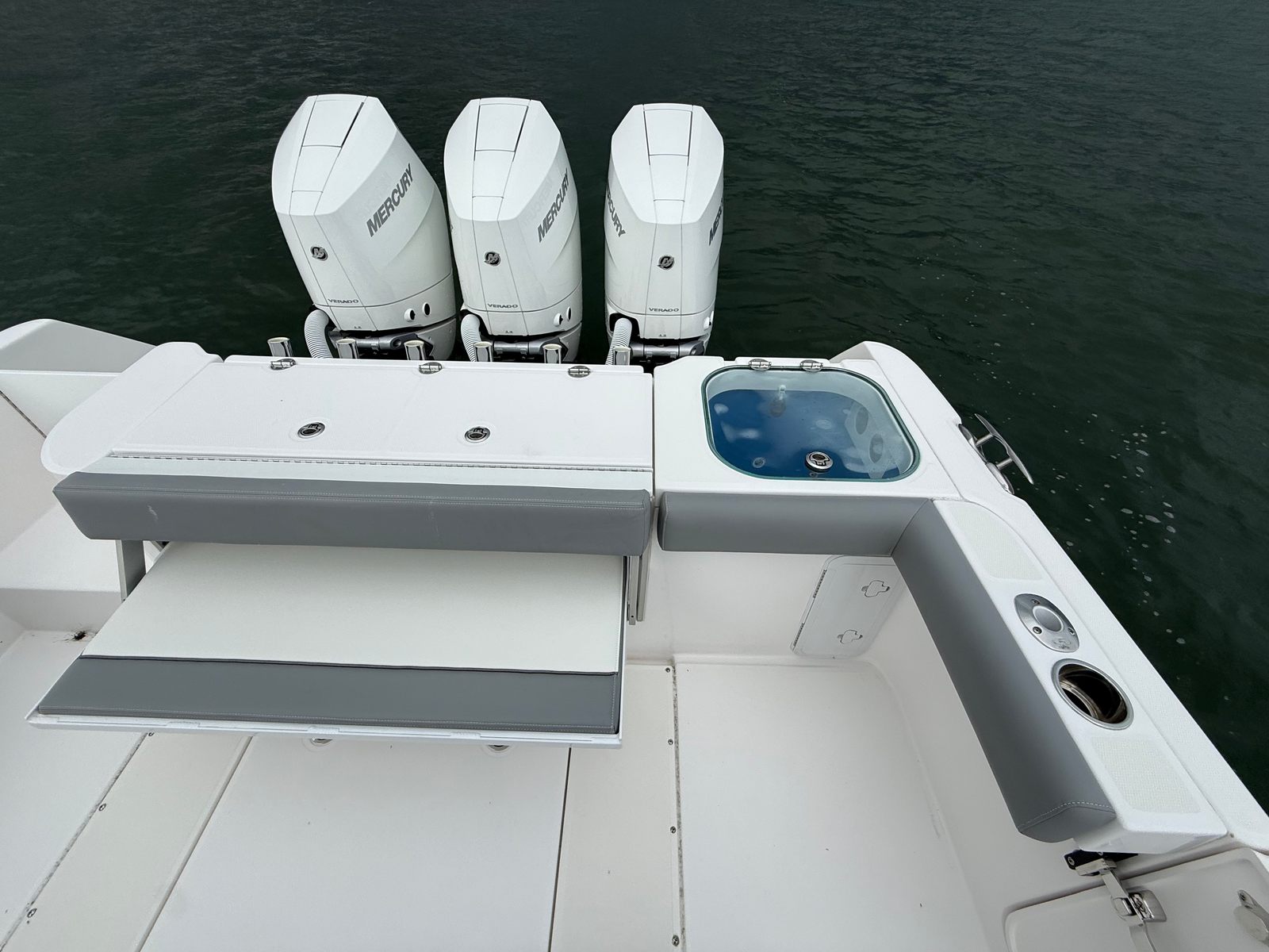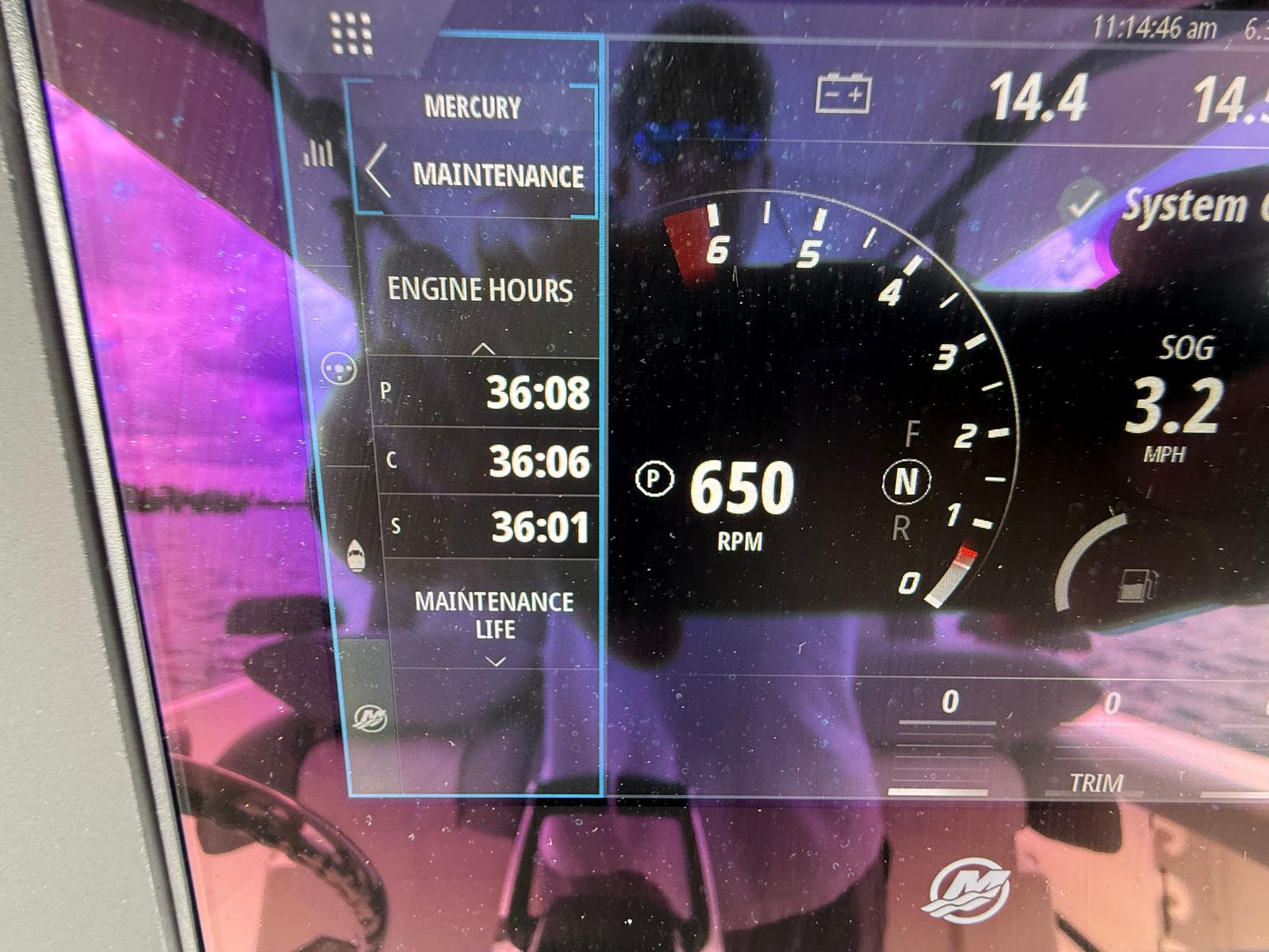 When it comes to performance, the Everglades 365 CC truly shines. Powered by three Mercury V10 Cold Fusion white triple engines, delivering an impressive total of 1050 horsepower, this vessel ensures robust power and smooth handling on the water. With only 35 engine hours, these engines are practically new, guaranteeing years of dependable performance. The combination of high horsepower and advanced engineering allows for effortless speed and agility, making every journey both exciting and comfortable.