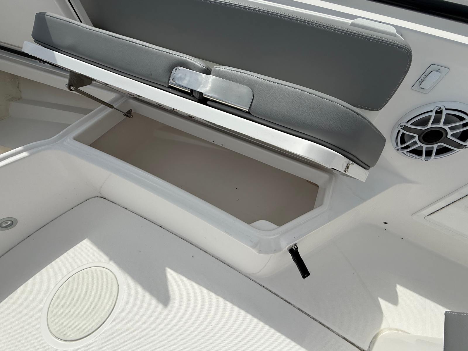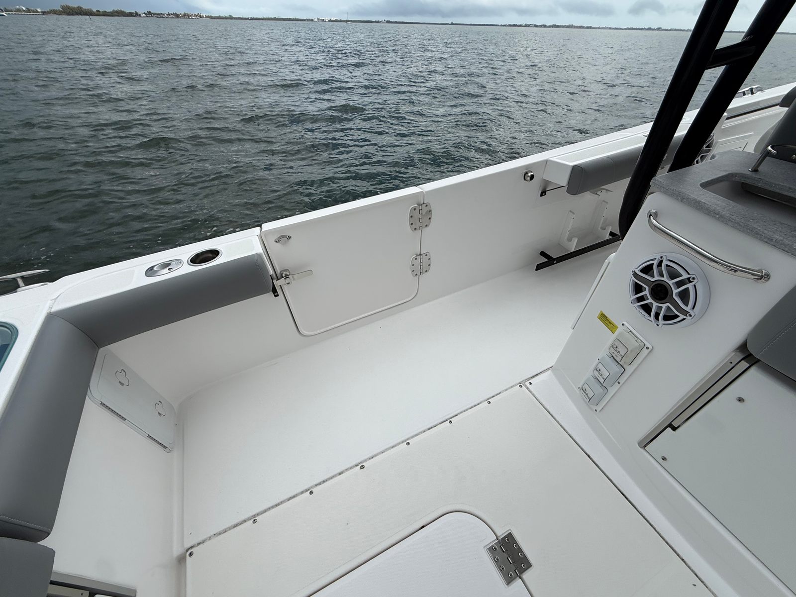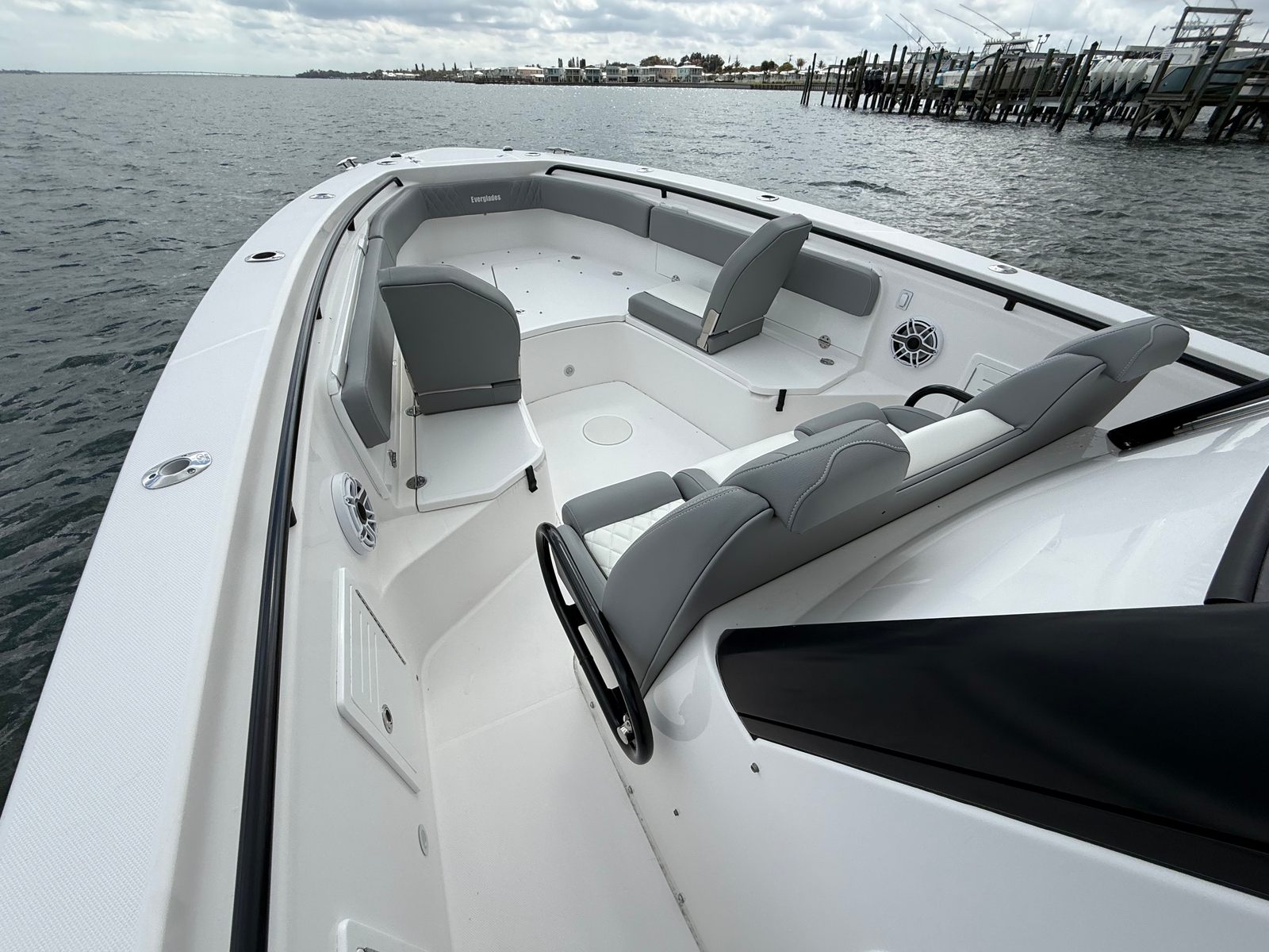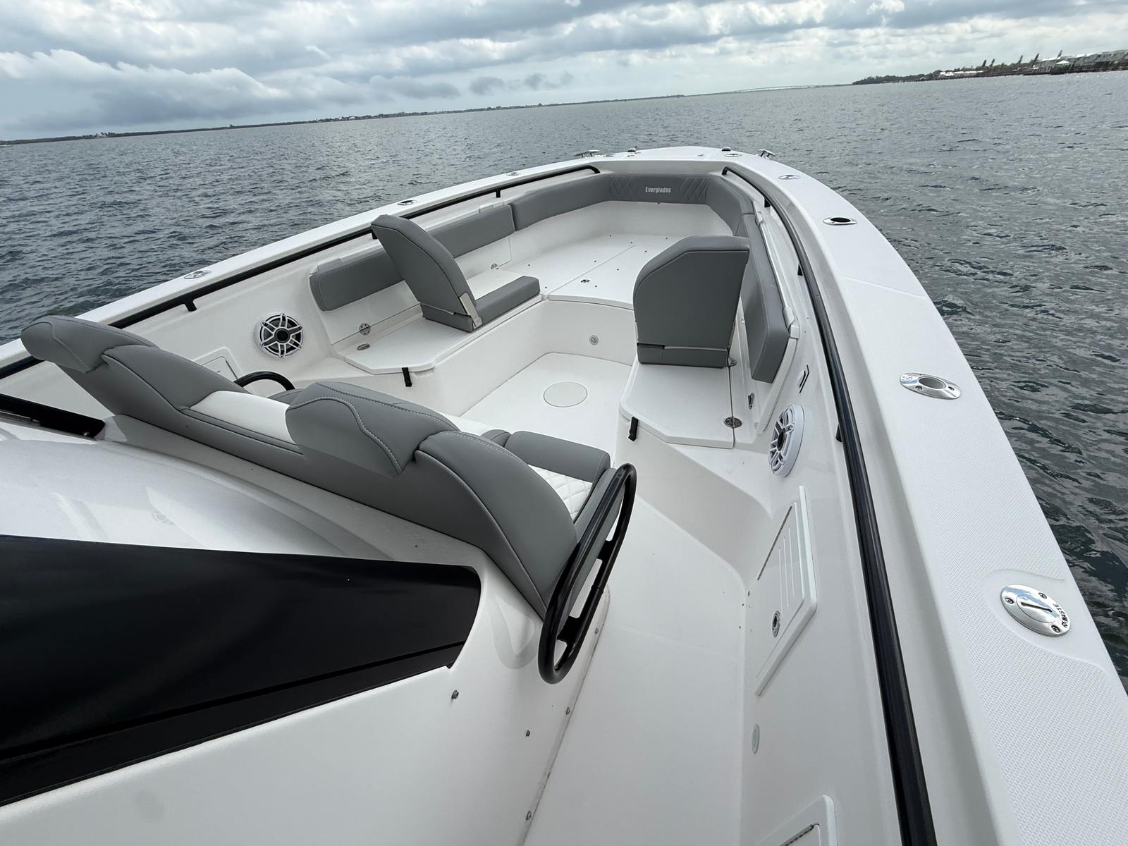 Imagine cruising along the coastline on a bright day, the Mediterranean bow shade providing a cool respite from the sun as you navigate effortlessly with the autopilot and joystick. Picture casting a line into serene waters, knowing that the advanced Garmin navigation and AIS transceiver are keeping you on the right course. Envision hosting a lively gathering on the flint gray upholstered seats, where friends and family can relax and enjoy the ride in style and comfort. These scenarios are just a glimpse of the exceptional experiences that the Everglades 365 CC center console boat offers.