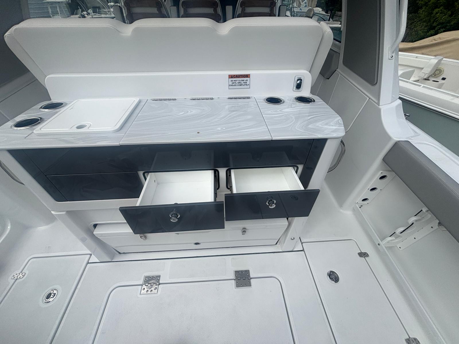 Power and precision define the performance of the Everglades 367 CX. Equipped with twin Mercury 400 V10 engines, this cruiser delivers a combined 800 horsepower, ensuring exhilarating acceleration and impressive top speeds. The advanced digital electric steering system provides effortless control, while the integrated autopilot and joystick for twin engine Mercury make navigation and docking remarkably intuitive. Whether you are cruising at a leisurely pace or powering through open waters, the Everglades 367 CX offers a responsive and dynamic boating experience that will thrill any enthusiast.