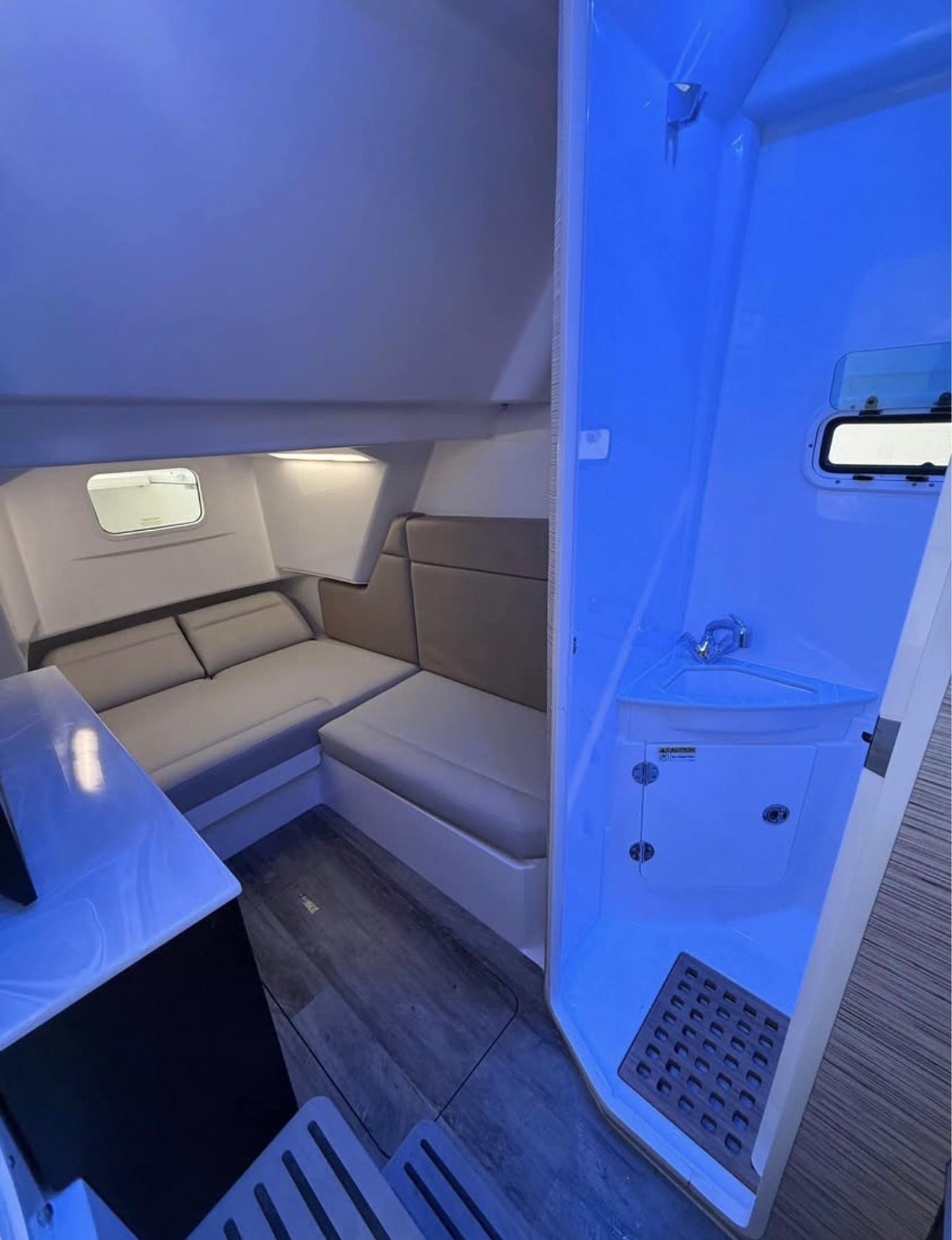 Owning the Everglades 375 CC means enjoying the ultimate blend of comfort, style, and functionality. The spacious layout provides plenty of room for family and friends to relax, socialize, and soak up the sun. The advanced climate control system ensures everyone stays cool on hot summer days, while the entertainment options, including the 32-inch TV, keep guests entertained during longer excursions. The solid white upholstery and elegant interior finishes create a welcoming atmosphere, perfect for hosting gatherings or unwinding after a day on the water.For anglers, the dedicated fishing features make every trip productive and enjoyable. The removable fillet table and ample rod storage allow you to prepare your catch with ease, while the versatile seating arrangements ensure everyone has a comfortable spot to watch the action or join in the fun.