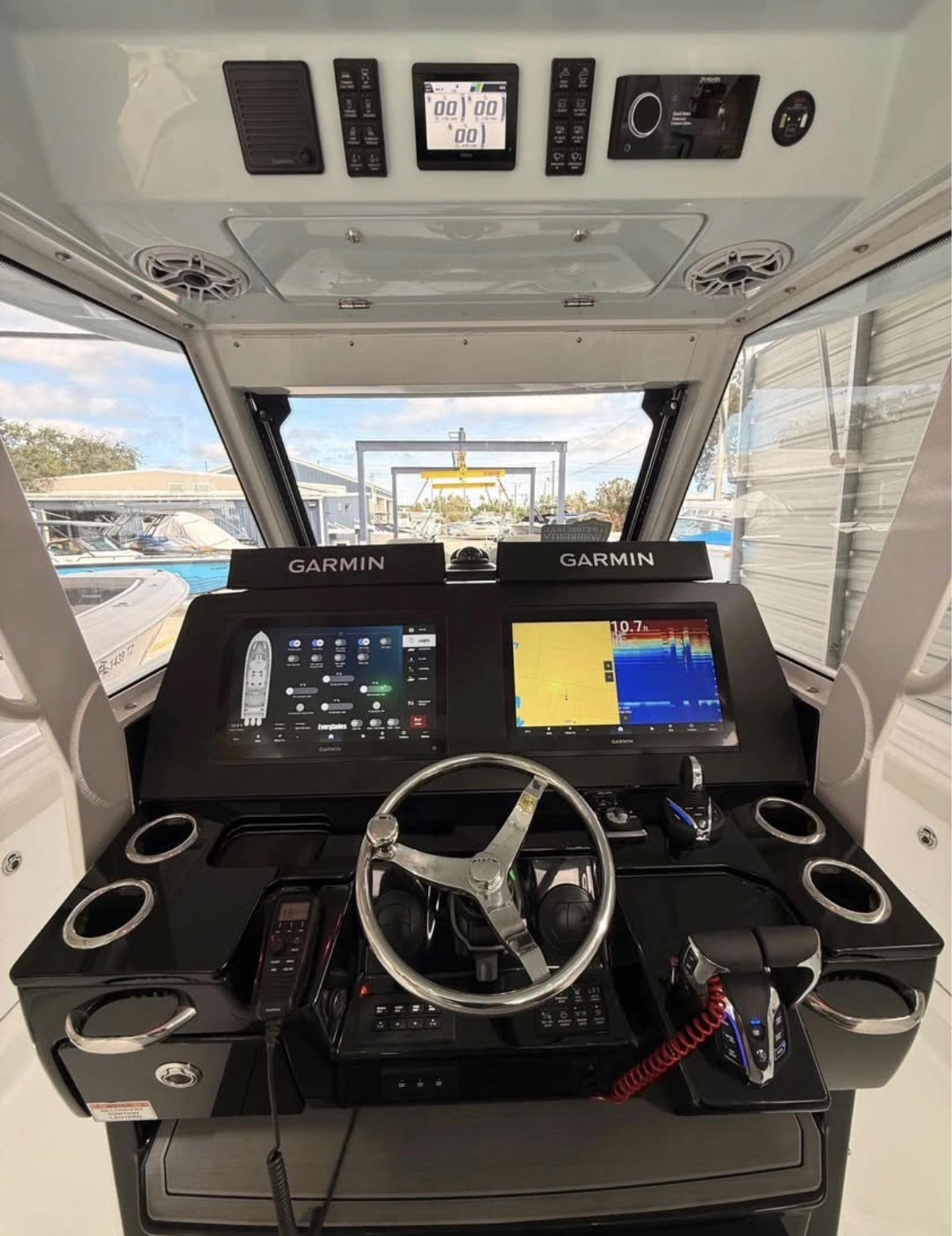 The Everglades 375 CC is designed with practicality in mind, making ownership a breeze. The generous storage cabinets and organized layout keep your gear secure and accessible, while the dual 110V 30A system and long shore power cords provide reliable power wherever you dock. The advanced joystick controls simplify docking and close-quarters maneuvering, reducing stress and making it easy for boaters of all experience levels to handle the vessel confidently.Fuel efficiency and reliability are hallmarks of the triple Yamaha F350 engines, ensuring you spend more time enjoying the water and less time worrying about maintenance. The protective canvas covers help preserve your investment by shielding key areas from the elements, while the water heater and generator add convenience for overnight stays or extended trips.
