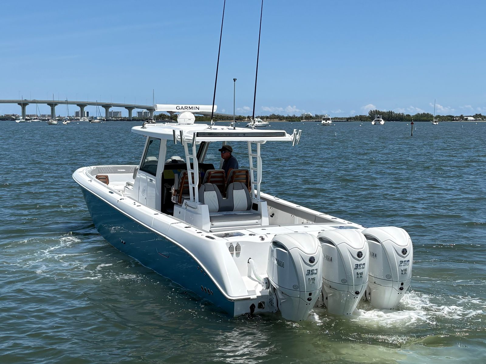 Power and precision are at the heart of the Everglades 375 CC. Equipped with Yamaha White Triple 350hp engines, this center console boat boasts a combined 1,050 horsepower, delivering exhilarating speed and smooth handling. The inclusion of AutoPilot and Joystick controls ensures effortless navigation and docking, even in challenging conditions. Whether you are cruising along the coast or heading offshore for a day of fishing, the advanced engine setup provides unmatched reliability and performance. The triple engine configuration not only offers impressive acceleration but also enhances maneuverability, making every outing a pleasure.