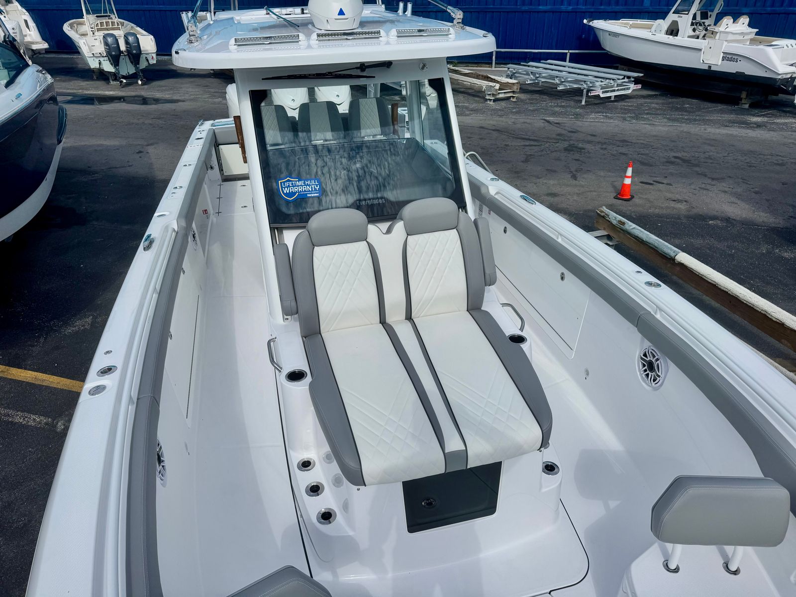 The 2025 Everglades 375 CC is a new center console boat measuring an impressive 40 feet in length. With its sleek lines and contemporary design, this vessel commands attention at every marina and on every waterway. The hull color gel in classic white offers a timeless look that complements the boat’s modern aesthetic, ensuring you’ll turn heads wherever you go. Built for both adventure and relaxation, the Everglades 375 CC is engineered to deliver unforgettable experiences for families, anglers, and luxury seekers alike.